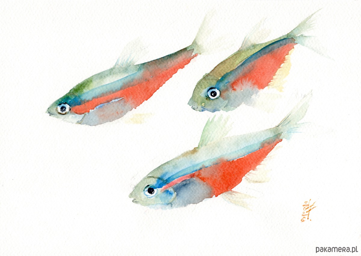 Oryginalna akwarela. Ryby