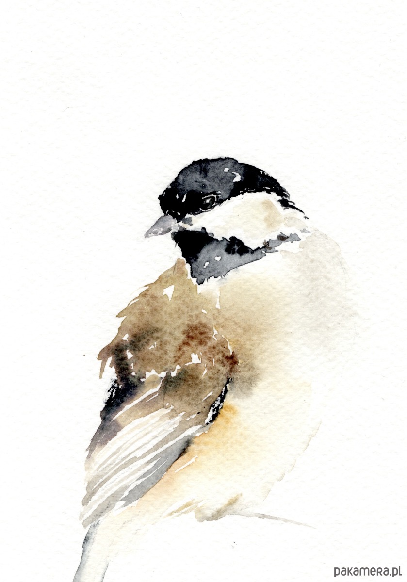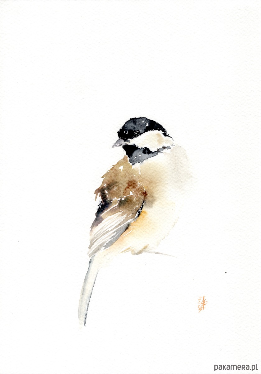 Oryginalna akwarela. Sikora uboga