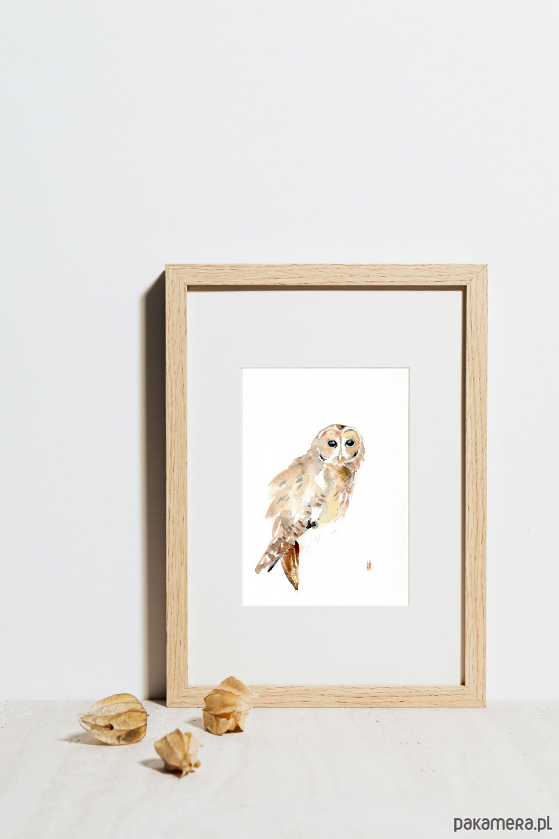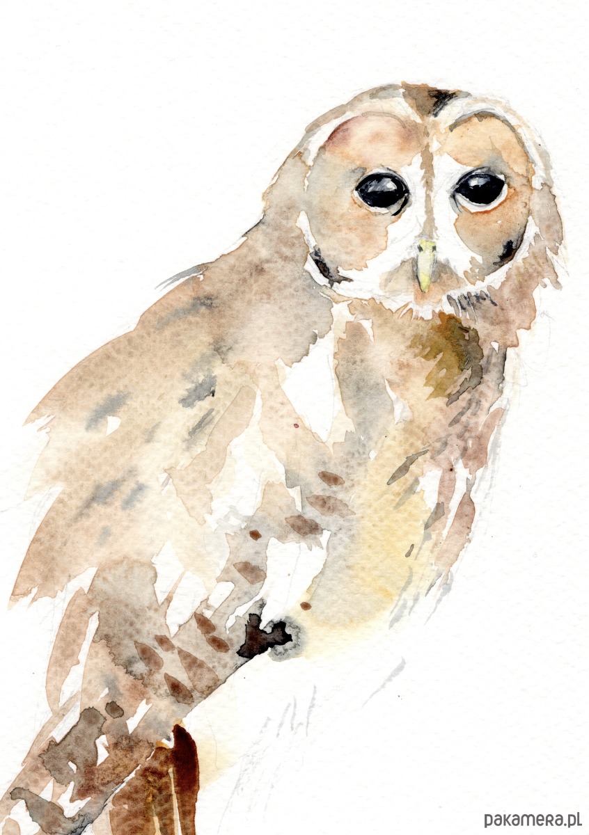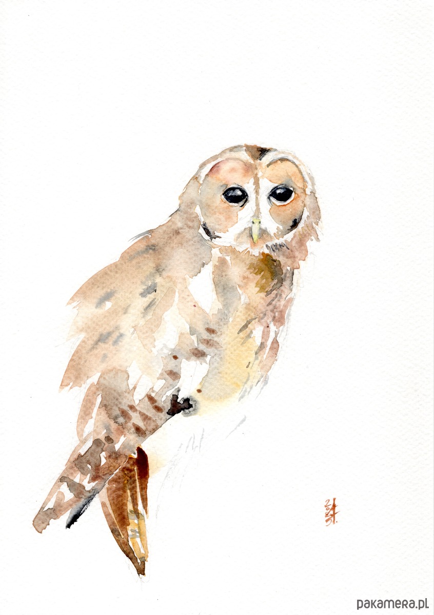 Oryginalna akwarela. Sowa