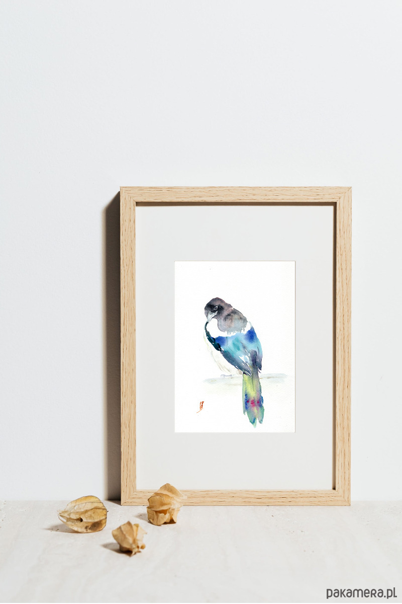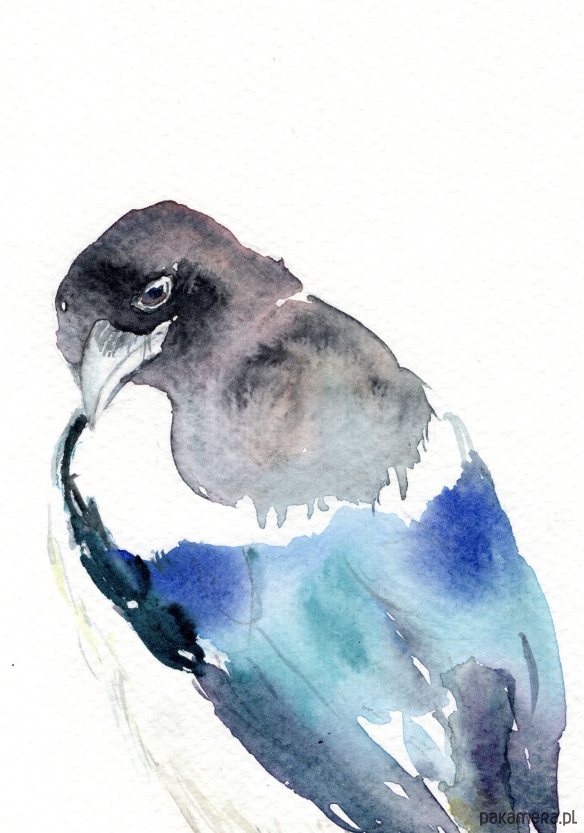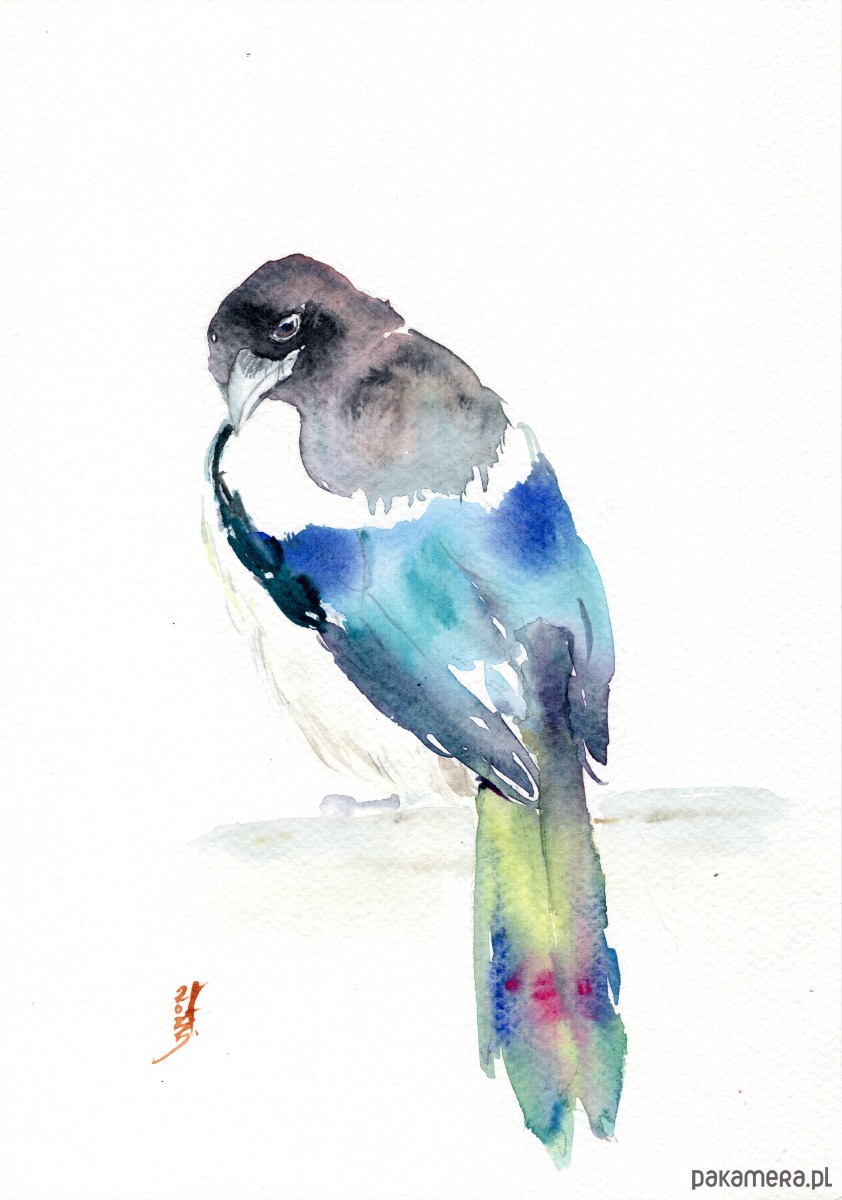Oryginalna akwarela. Sroka