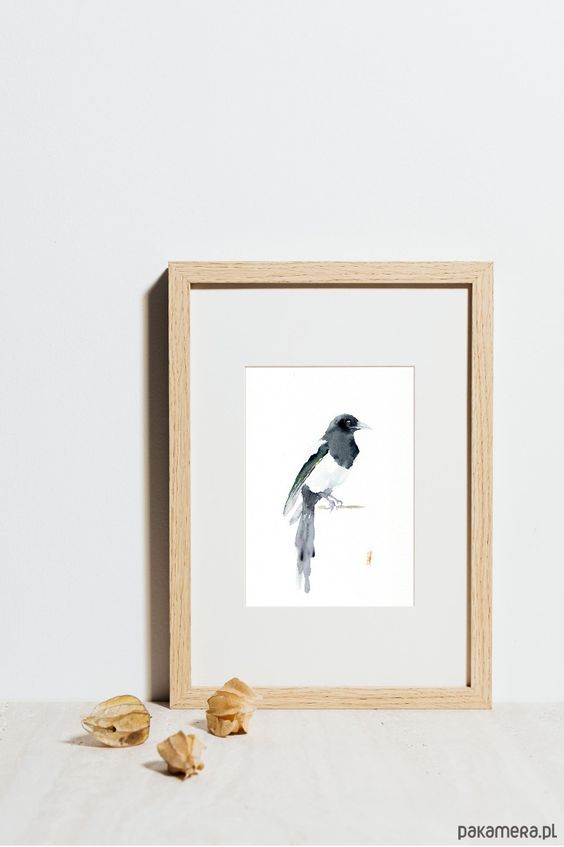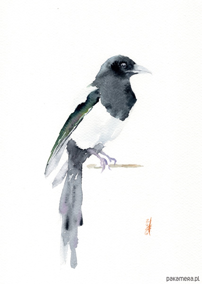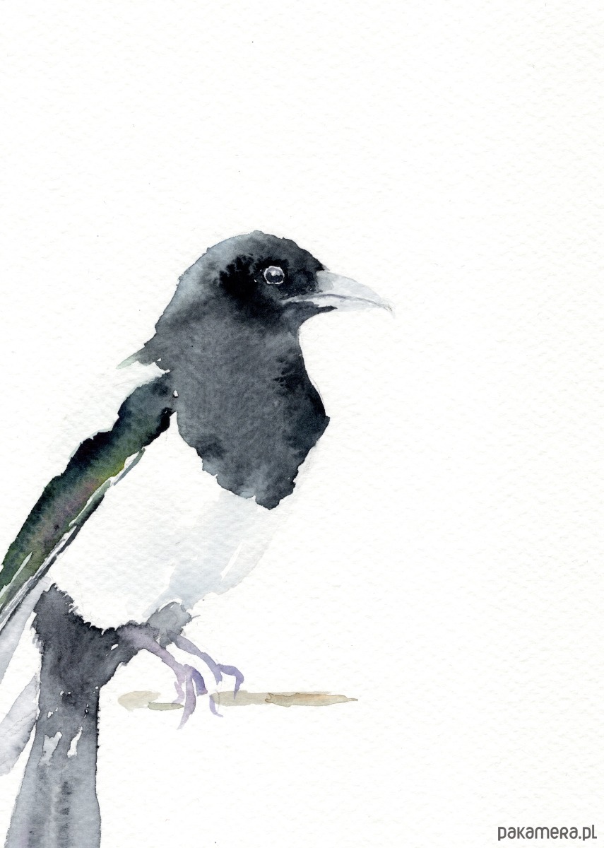 Oryginalna akwarela. Sroka