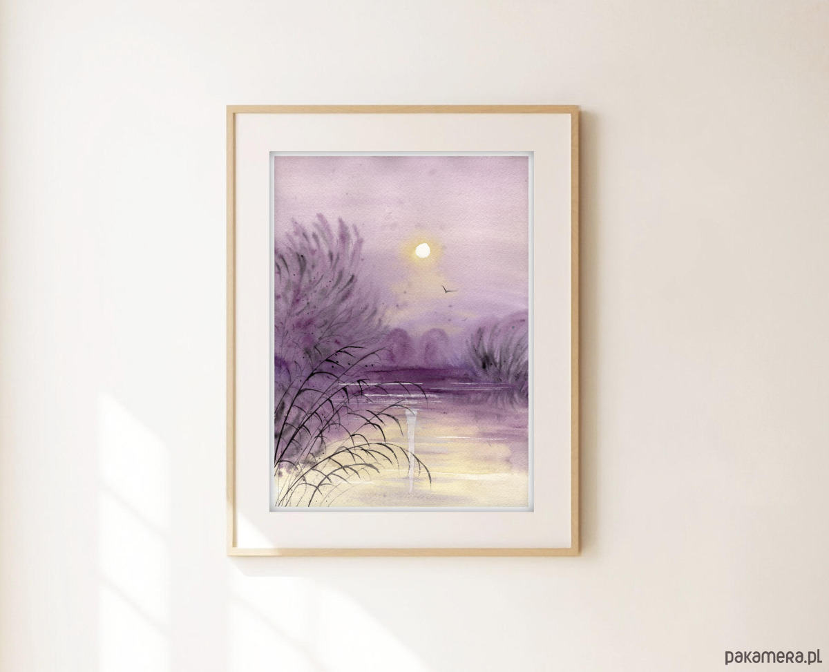 Oryginalna akwarela. Zachód słońca A4