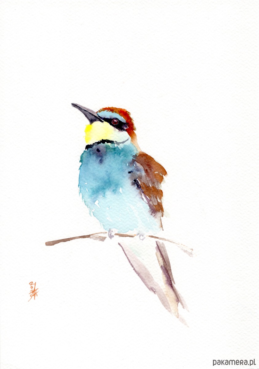Oryginalna akwarela. Żołna