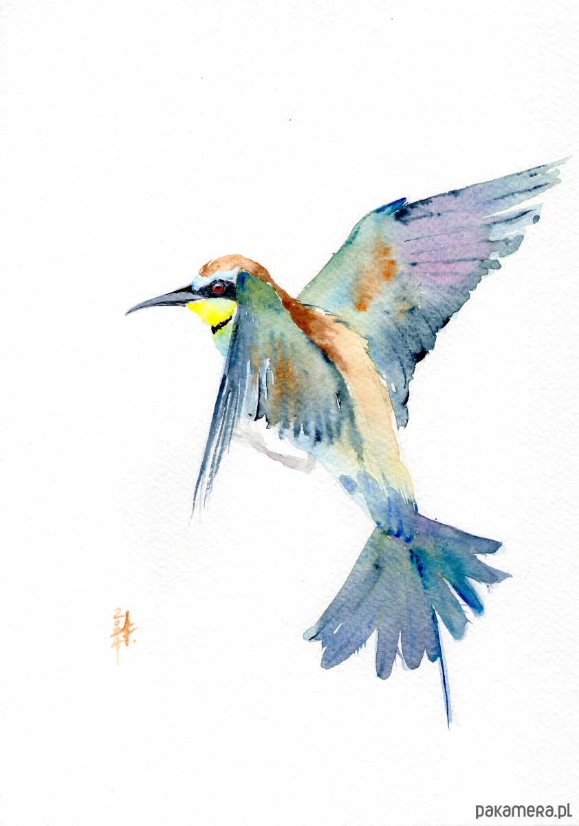 Oryginalna akwarela. Żołna