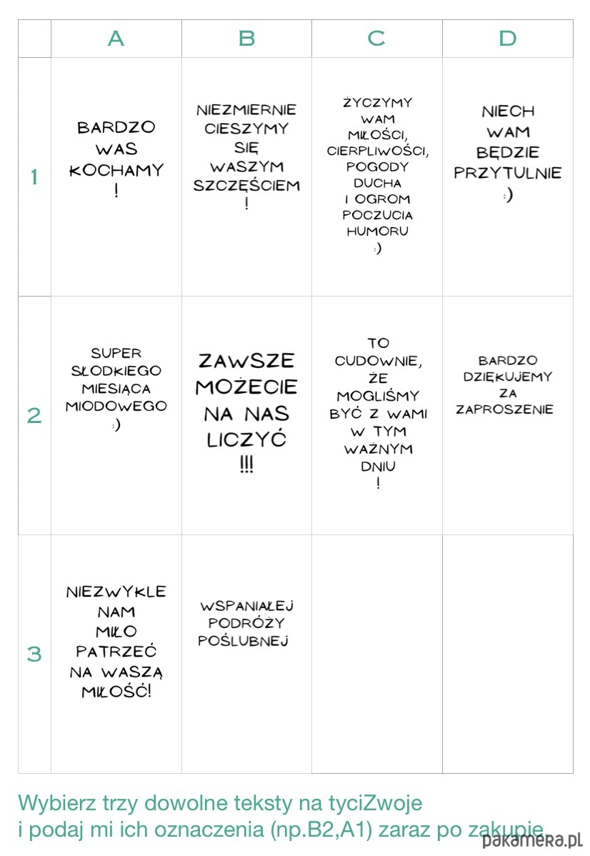Jeśli nie wybierzesz tekstów, zostaną wysłane trzy z 1-go zdjęcia.