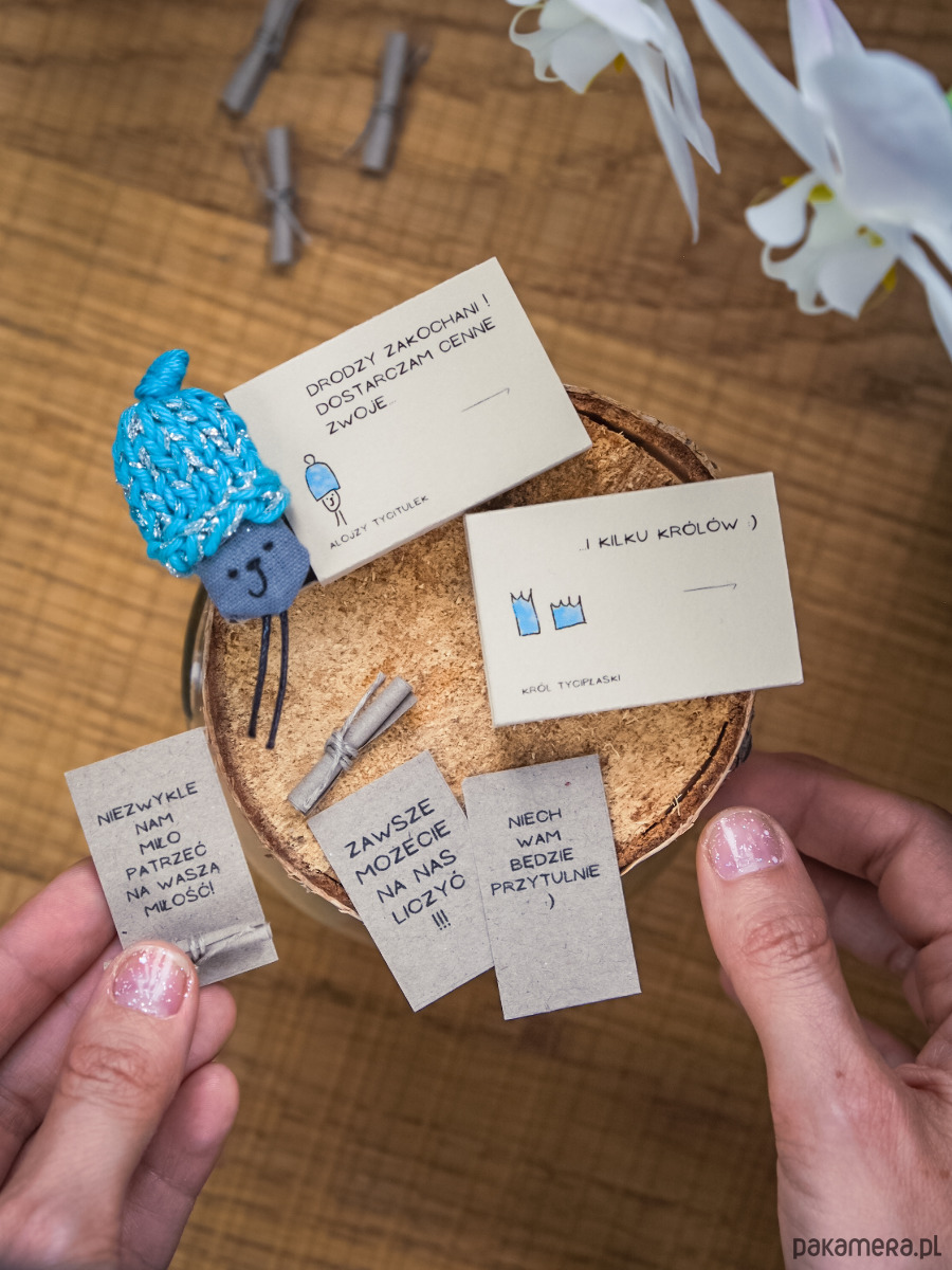 Składa się ona z malutkiego tyciTulka, który sam wypisał tuszem 3 tyciZwoje. Zawarł w nich cenne wiadomości od Ciebie dla świętujących.