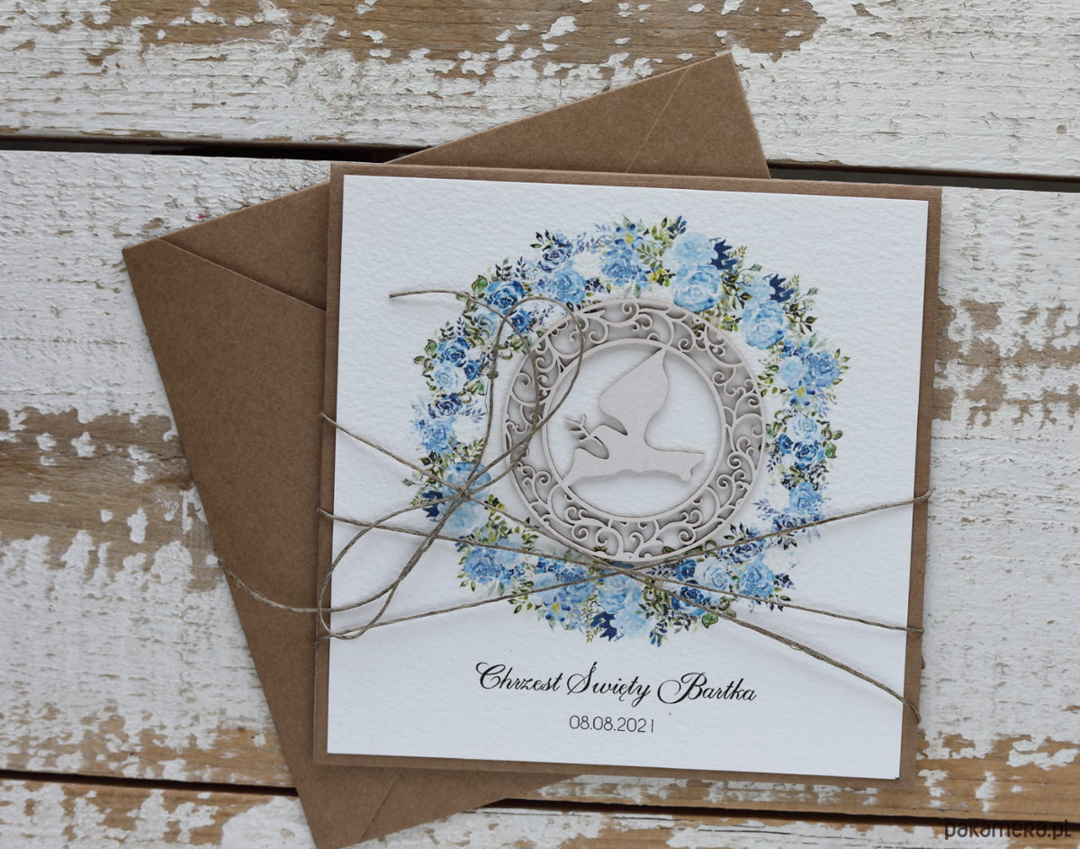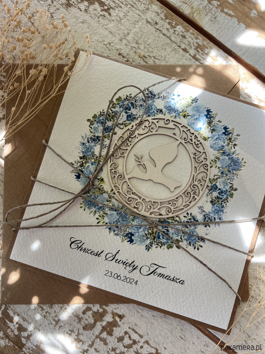 Oryginalna kartka z personalizacją na chrzest dla chłopca - pomysł na personalizowany prezent na chrzciny - pamiątka chrztu ręcznie robiona od matki chrzestnej, ojca chrzestnego + najpiękniejsze życzenia