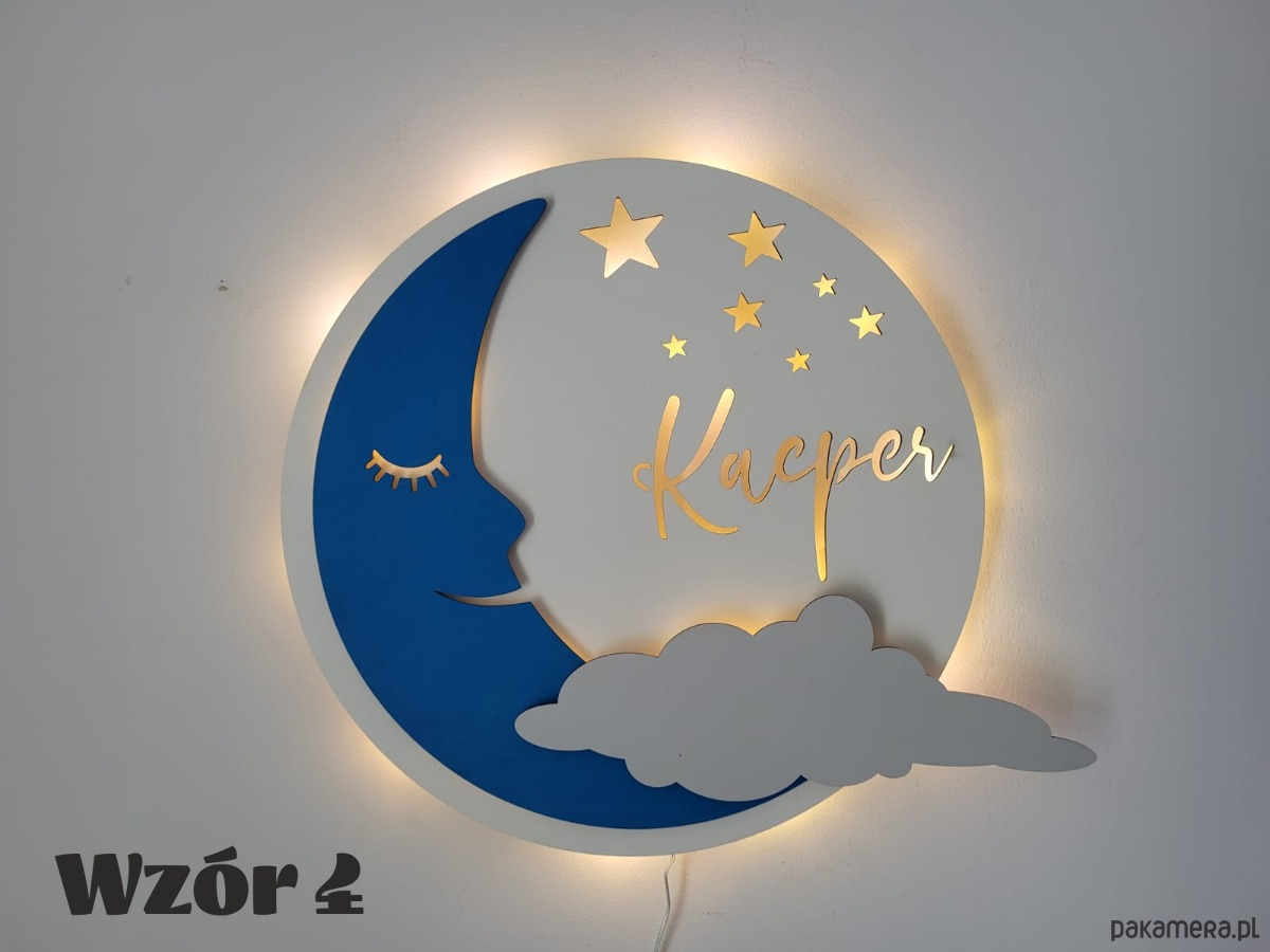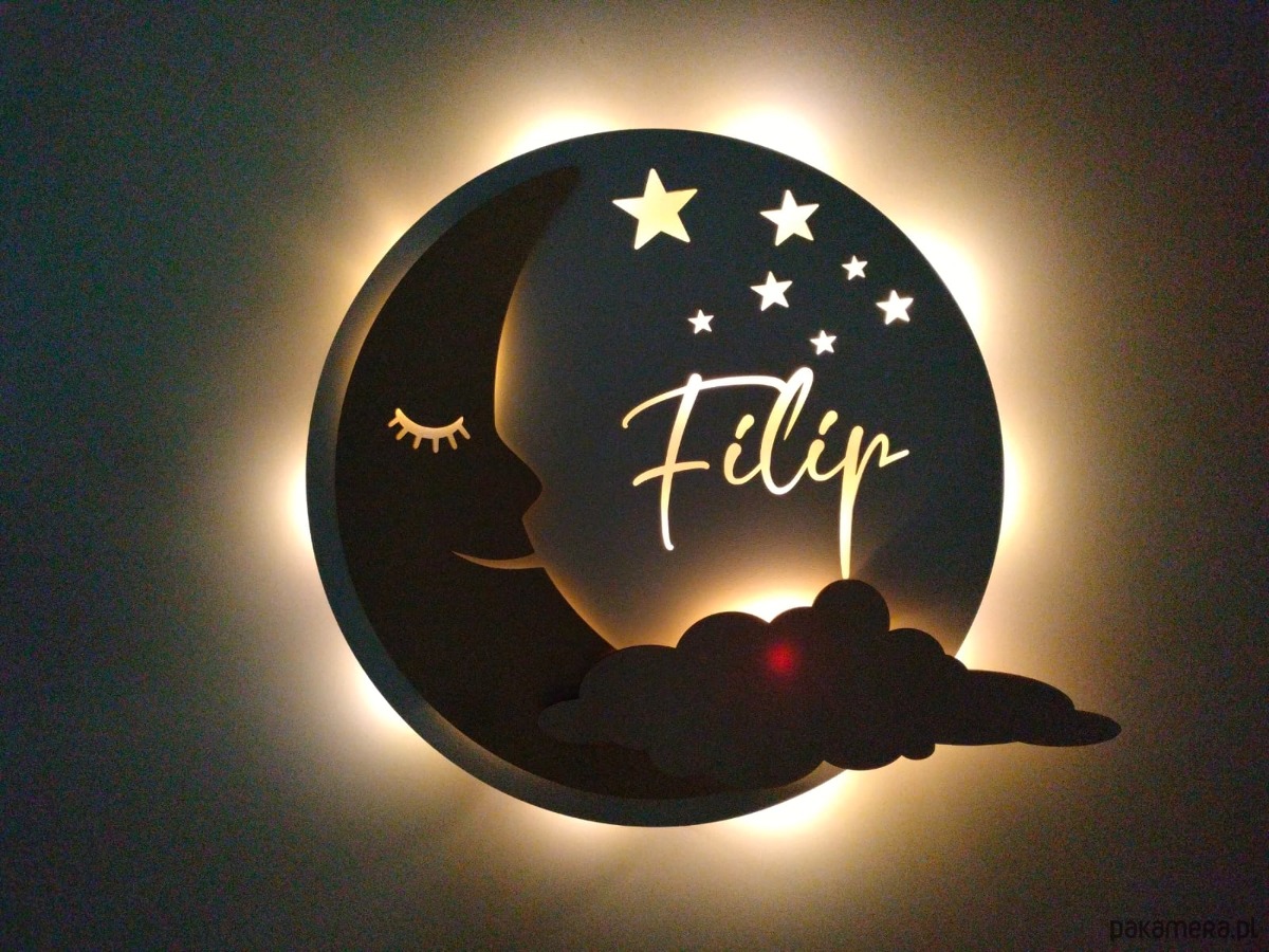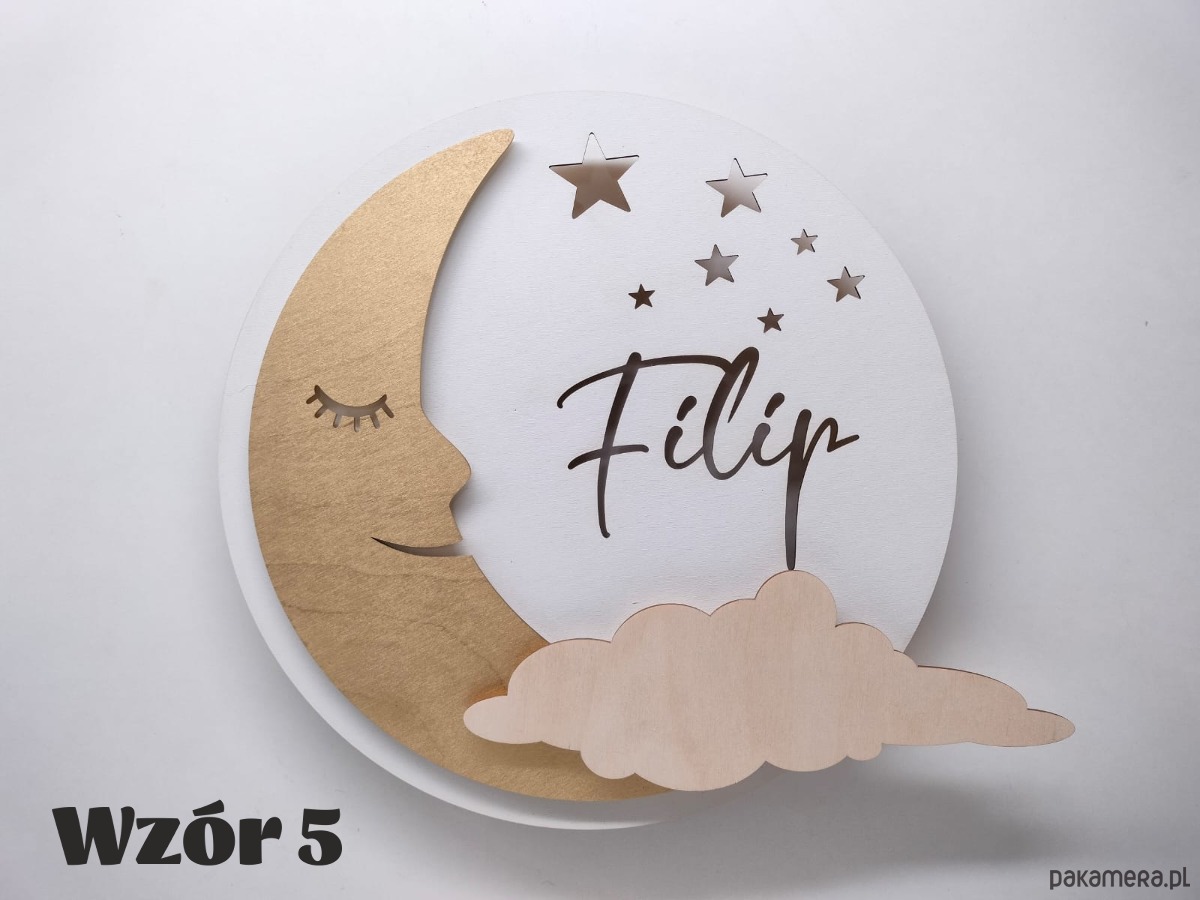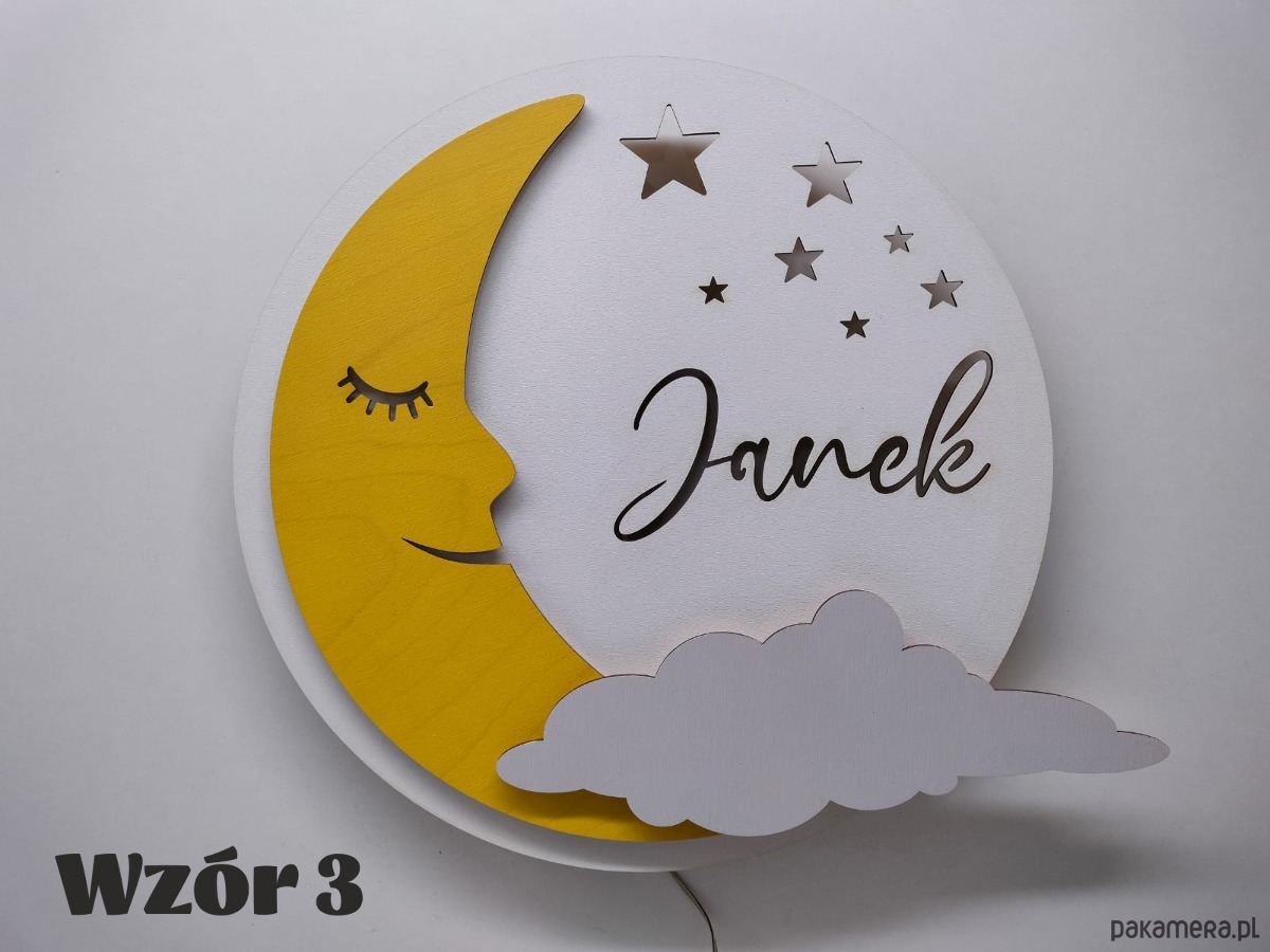Oryginalna personalizowana drewniana lampka KSIĘŻYC z imieniem.