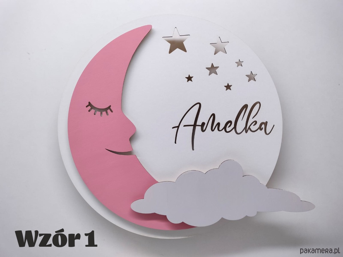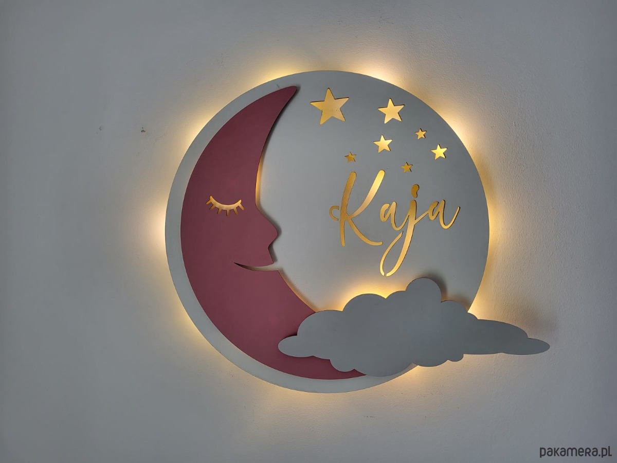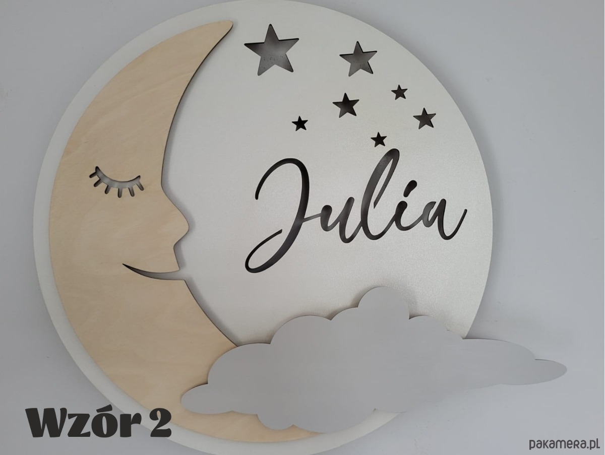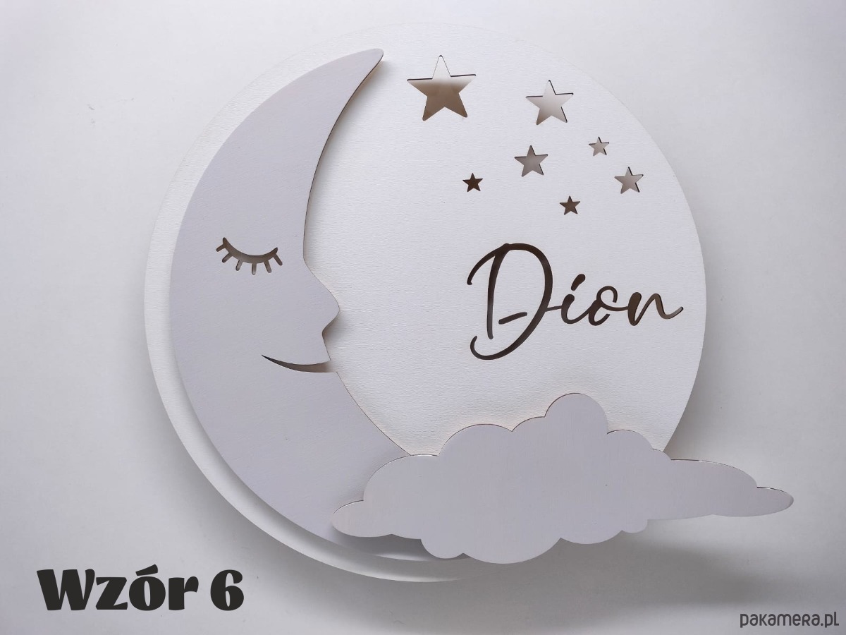 Oryginalna personalizowana drewniana lampka KSIĘŻYC z imieniem.