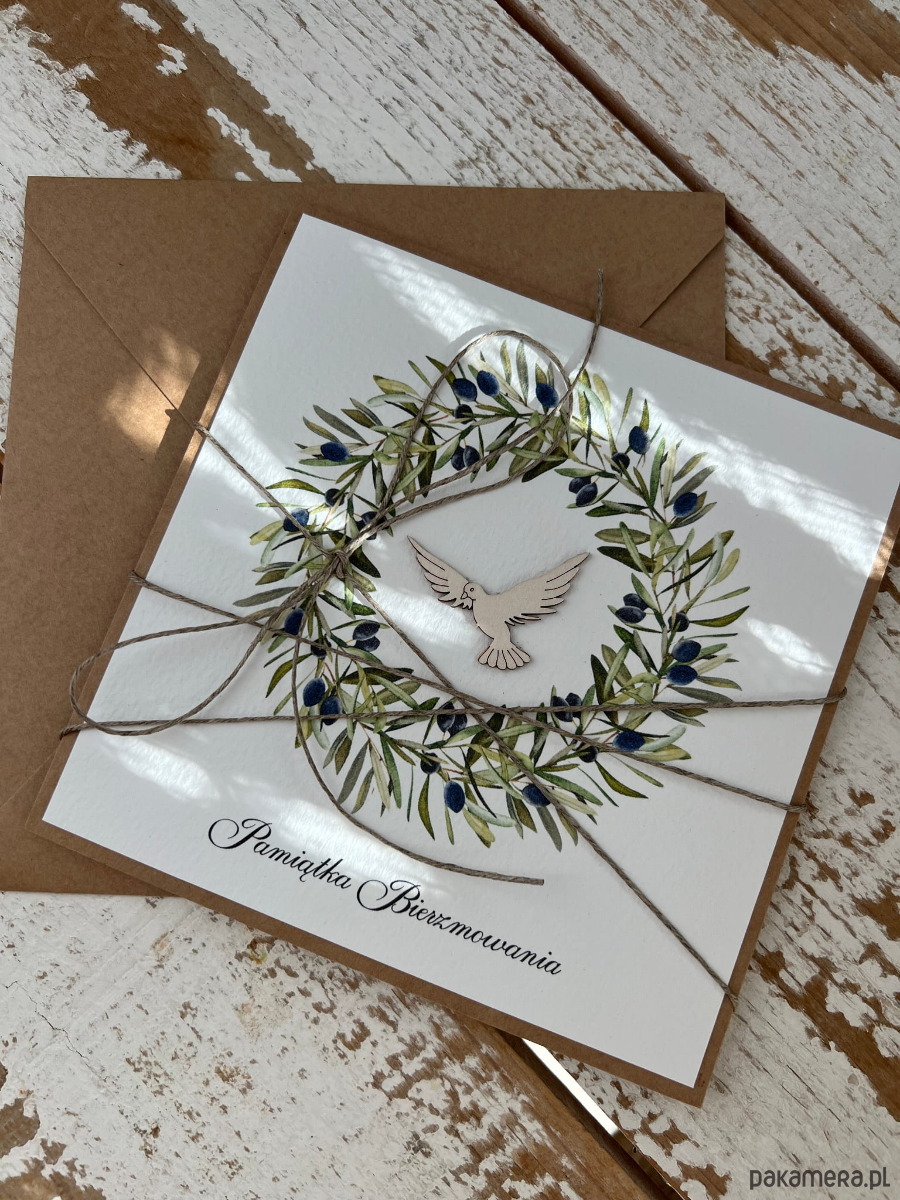 Oryginalna ręcz nie robiona pamiątka bierzmowania - kartka na bierzmowanie z życzeniami