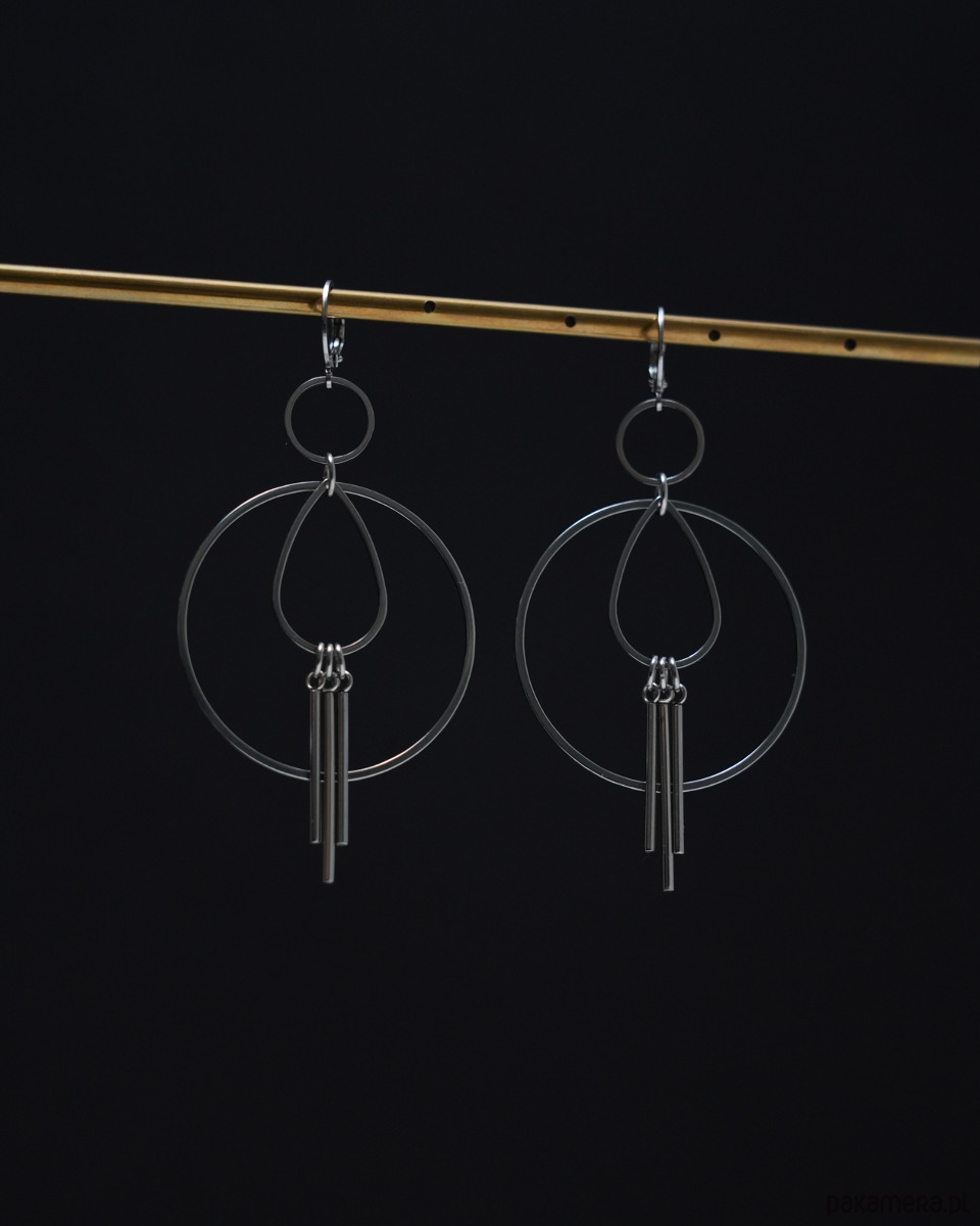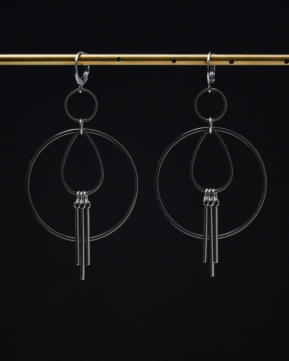 Oryginalne i efektowne kolczyki geometryczne, w całości wykonane ze STALI SZLACHETNEJ.