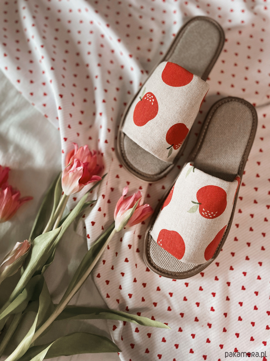 Oryginalne kapcie dla kobiety w jabłka