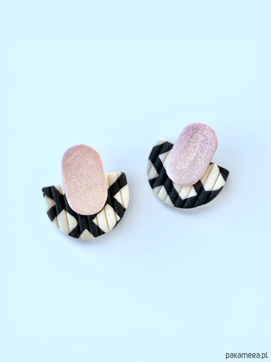 Oryginalne kolczyki wykonane ręcznie z dbałością o szczegóły z profesjonalnej glinki polimerowej, wypalane w piecu i szlifowane w domowej pracowni. Każda para kolczyków jest niepowtarzalna i wyjątkowa. Kolczyki są bardzo lekkie i wygodne, nie obciążają płatka ucha i przyciągają spojrzenia. Zapinane na kółeczko ze stali chirurgicznej.