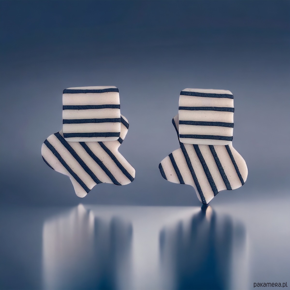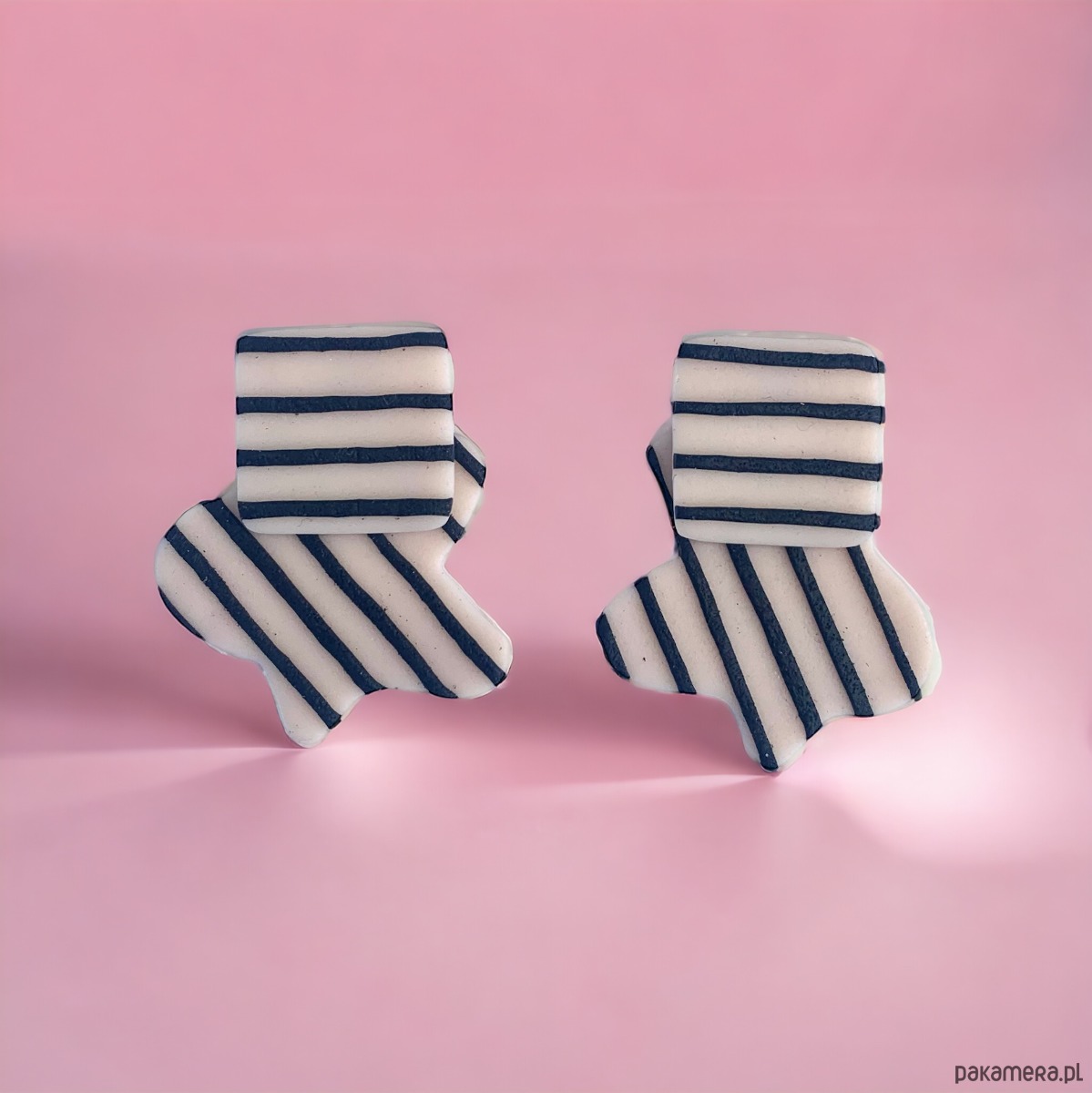 Oryginalne kolczyki wykonane ręcznie z dbałością o szczegóły z profesjonalnej glinki polimerowej, wypalane w piecu i szlifowane w domowej pracowni. Każda para kolczyków jest niepowtarzalna i wyjątkowa. Kolczyki są bardzo lekkie i wygodne, nie obciążają płatka ucha i przyciągają spojrzenia. Zapinane na sztyft ze stali chirurgicznej.