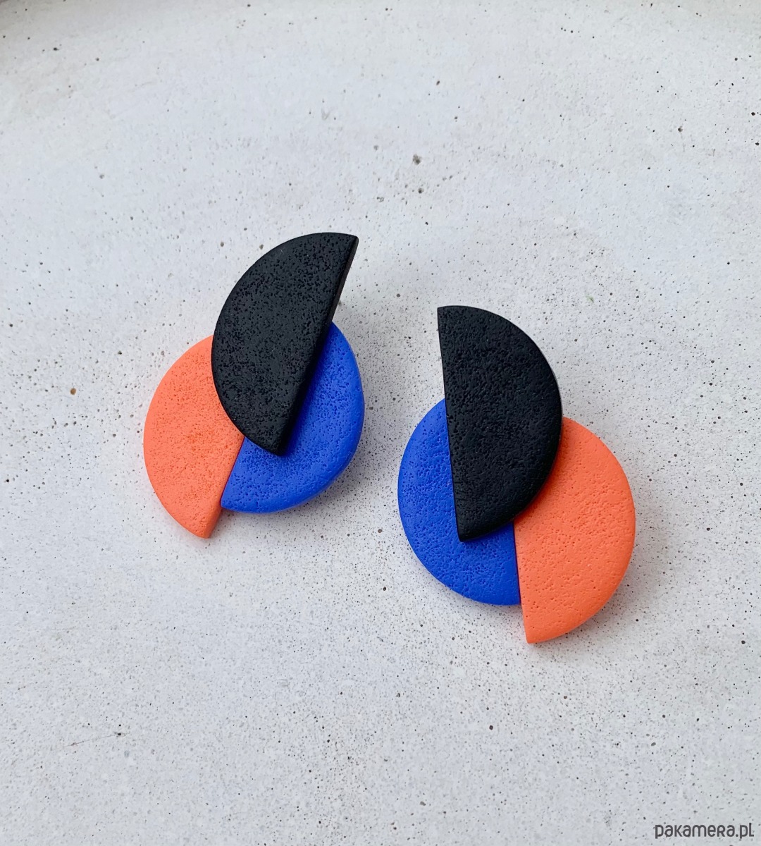 Oryginalne kolczyki wykonane ręcznie z dbałością o szczegóły z profesjonalnej glinki polimerowej, wypalane w piecu i szlifowane w domowej pracowni. Każda para kolczyków jest niepowtarzalna i wyjątkowa. Kolczyki są bardzo lekkie i wygodne, nie obciążają płatka ucha i przyciągają spojrzenia. Zapinane na sztyft ze stali chirurgicznej.