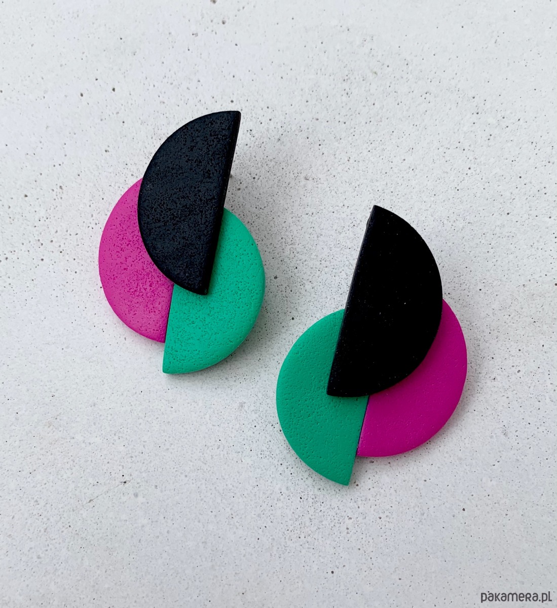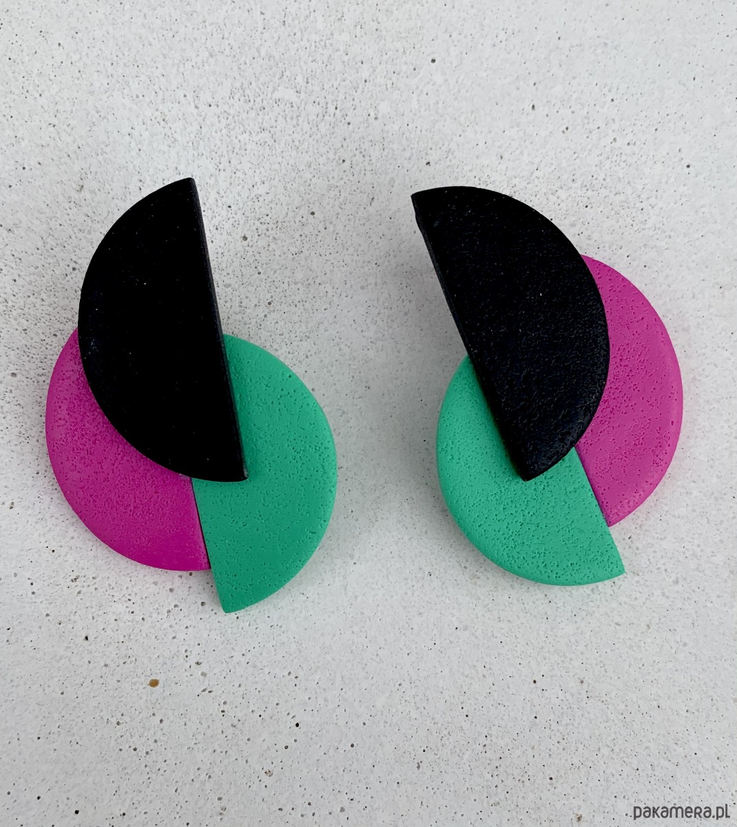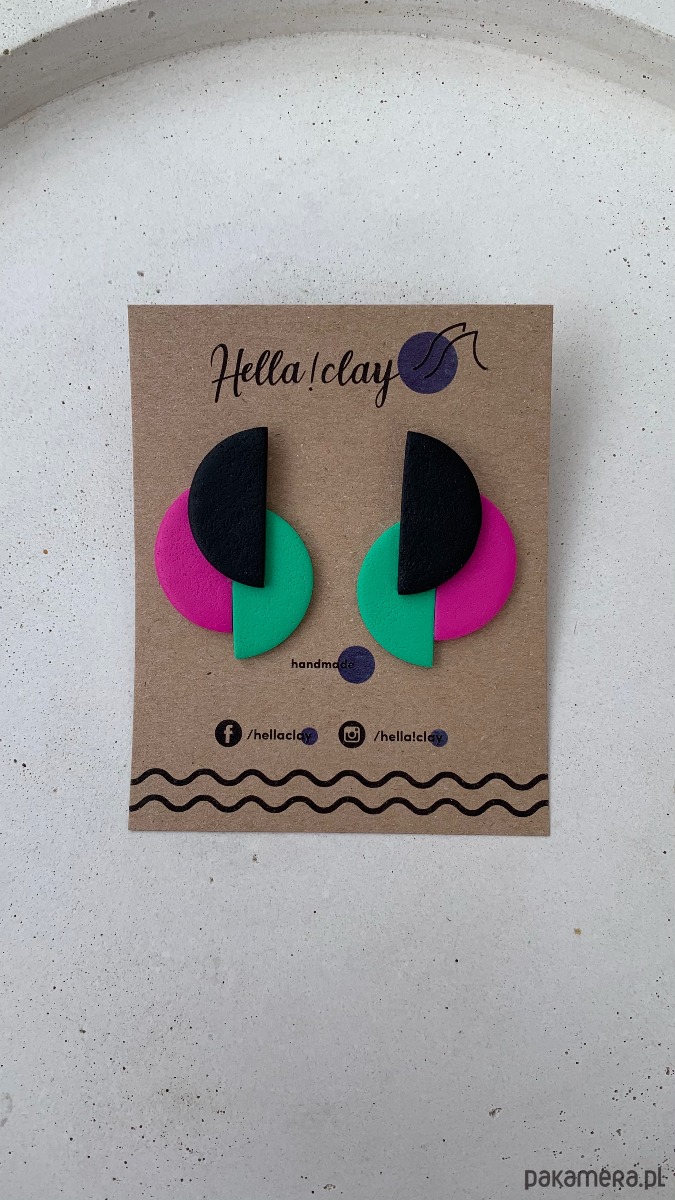 Oryginalne kolczyki wykonane ręcznie z dbałością o szczegóły z profesjonalnej glinki polimerowej, wypalane w piecu i szlifowane w domowej pracowni. Każda para kolczyków jest niepowtarzalna i wyjątkowa. Kolczyki są bardzo lekkie i wygodne, nie obciążają płatka ucha i przyciągają spojrzenia. Zapinane na sztyft ze stali chirurgicznej.