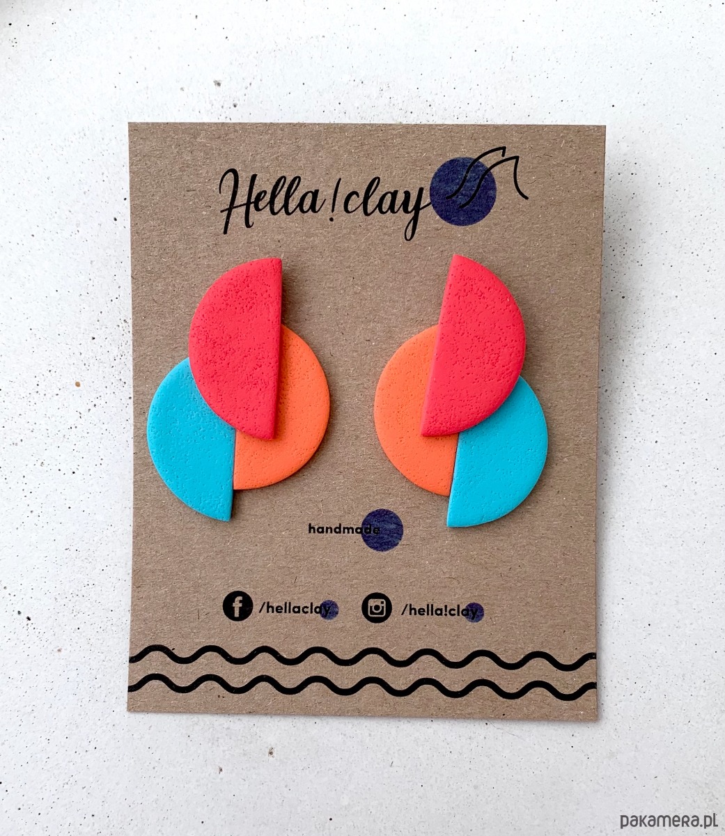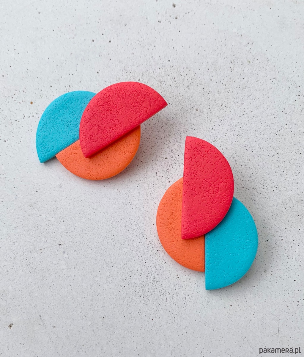 Oryginalne kolczyki wykonane ręcznie z dbałością o szczegóły z profesjonalnej glinki polimerowej, wypalane w piecu i szlifowane w domowej pracowni. Każda para kolczyków jest niepowtarzalna i wyjątkowa. Kolczyki są bardzo lekkie i wygodne, nie obciążają płatka ucha i przyciągają spojrzenia. Zapinane na sztyft ze stali chirurgicznej.