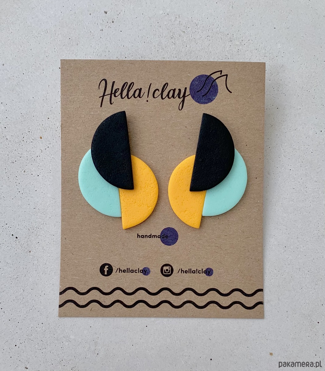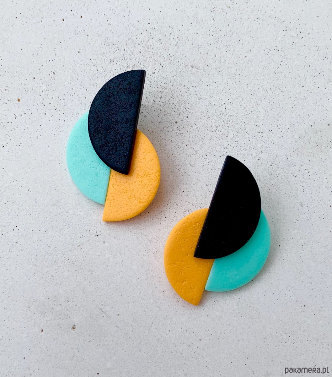 Oryginalne kolczyki wykonane ręcznie z dbałością o szczegóły z profesjonalnej glinki polimerowej, wypalane w piecu i szlifowane w domowej pracowni. Każda para kolczyków jest niepowtarzalna i wyjątkowa. Kolczyki są bardzo lekkie i wygodne, nie obciążają płatka ucha i przyciągają spojrzenia. Zapinane na sztyft ze stali chirurgicznej.