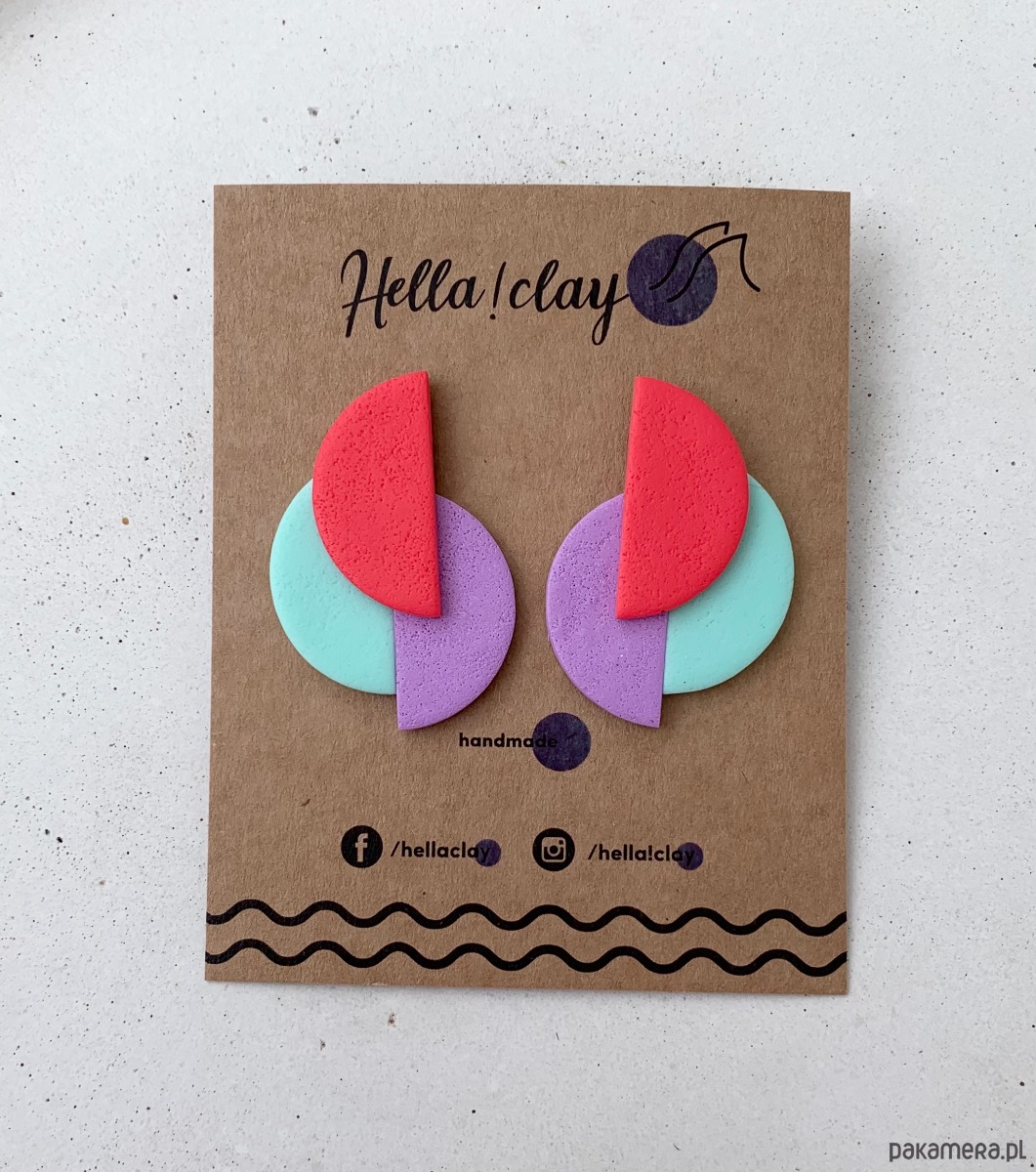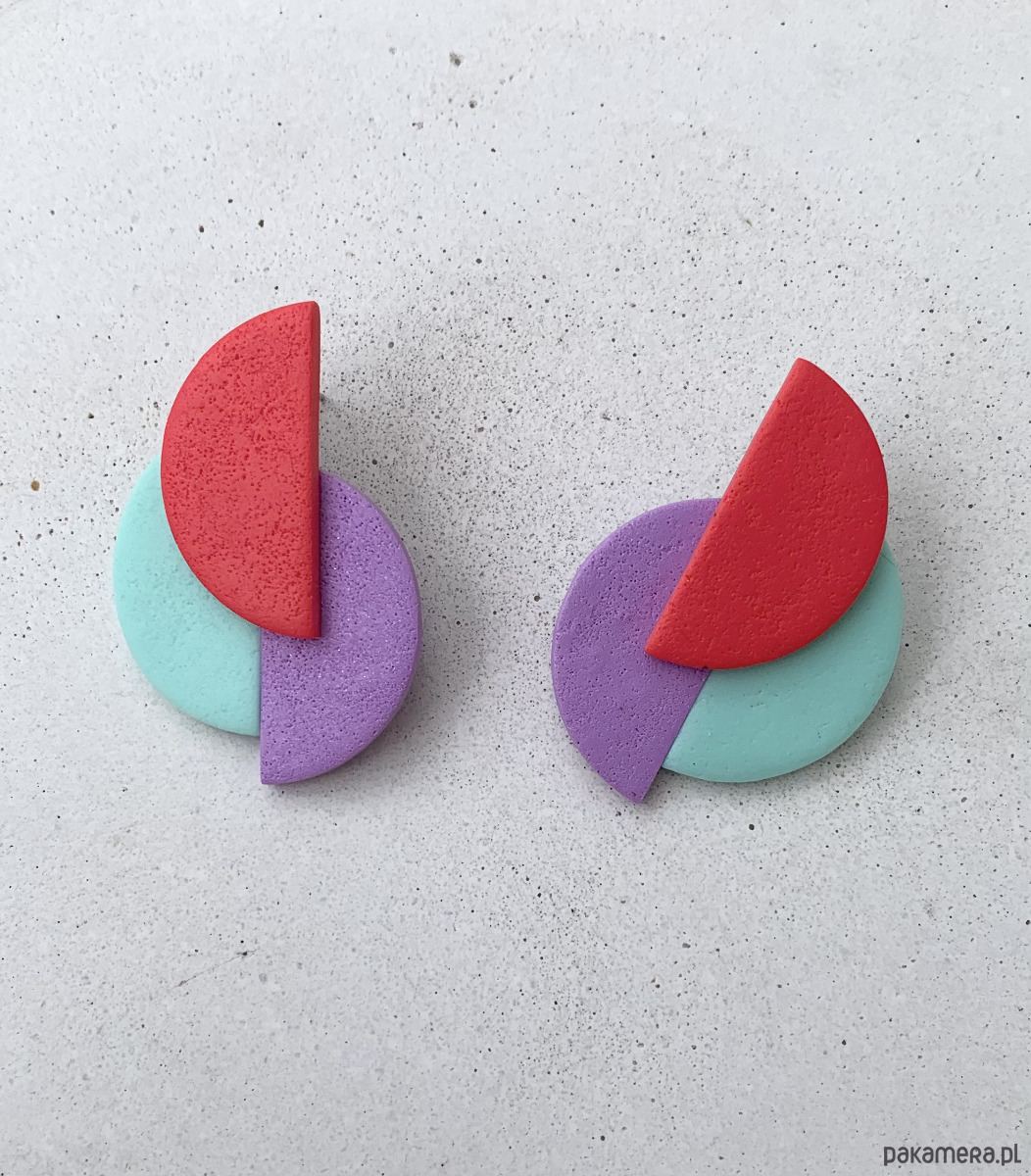 Oryginalne kolczyki wykonane ręcznie z dbałością o szczegóły z profesjonalnej glinki polimerowej, wypalane w piecu i szlifowane w domowej pracowni. Każda para kolczyków jest niepowtarzalna i wyjątkowa. Kolczyki są bardzo lekkie i wygodne, nie obciążają płatka ucha i przyciągają spojrzenia. Zapinane na sztyft ze stali chirurgicznej.