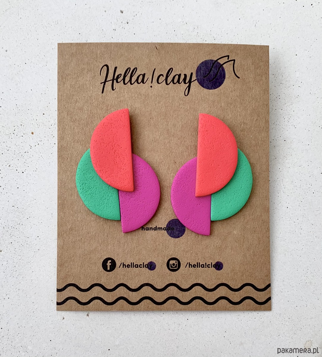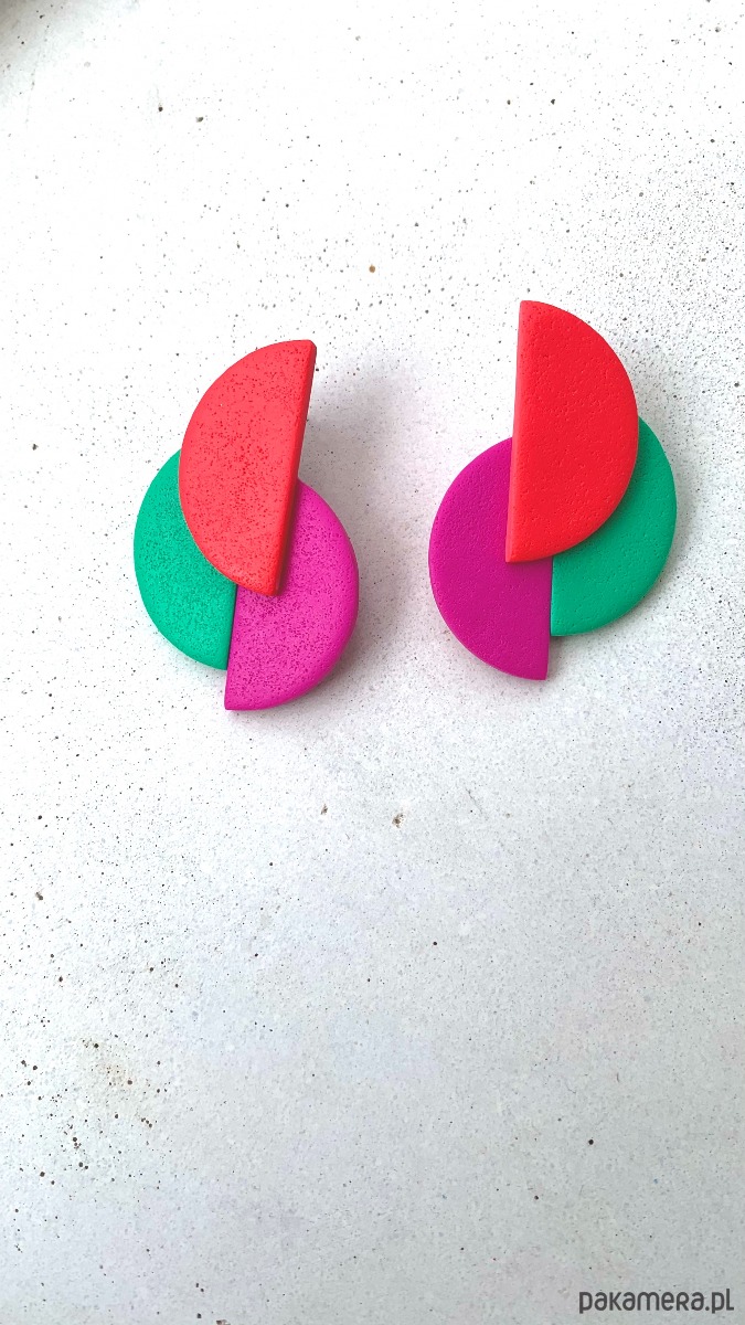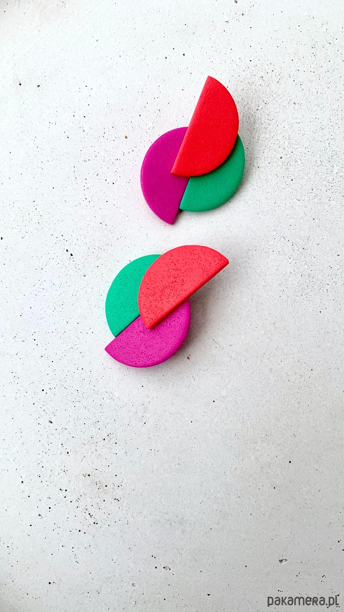 Oryginalne kolczyki wykonane ręcznie z dbałością o szczegóły z profesjonalnej glinki polimerowej, wypalane w piecu i szlifowane w domowej pracowni. Każda para kolczyków jest niepowtarzalna i wyjątkowa. Kolczyki są bardzo lekkie i wygodne, nie obciążają płatka ucha i przyciągają spojrzenia. Zapinane na sztyft ze stali chirurgicznej.