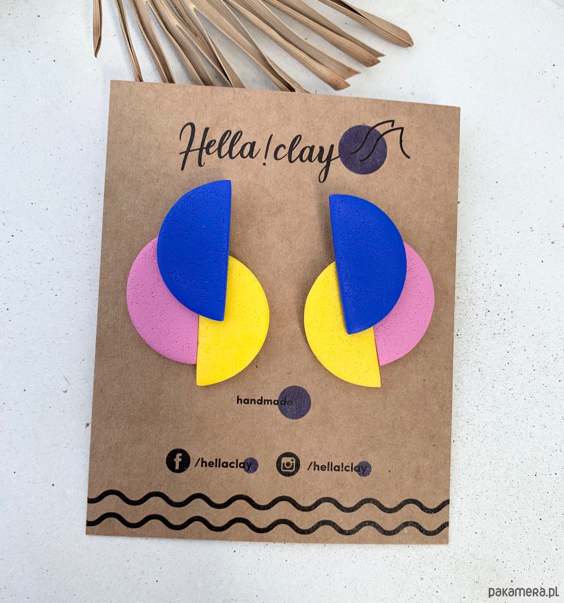 Oryginalne kolczyki wykonane ręcznie z dbałością o szczegóły z profesjonalnej glinki polimerowej, wypalane w piecu i szlifowane w domowej pracowni. Każda para kolczyków jest niepowtarzalna i wyjątkowa. Kolczyki są bardzo lekkie i wygodne, nie obciążają płatka ucha i przyciągają spojrzenia. Zapinane na sztyft ze stali chirurgicznej.