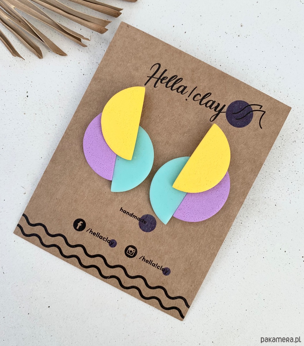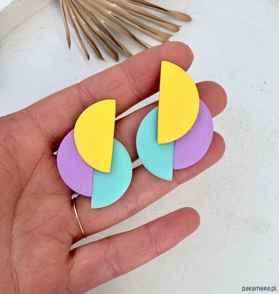 Oryginalne kolczyki wykonane ręcznie z dbałością o szczegóły z profesjonalnej glinki polimerowej, wypalane w piecu i szlifowane w domowej pracowni. Każda para kolczyków jest niepowtarzalna i wyjątkowa. Kolczyki są bardzo lekkie i wygodne, nie obciążają płatka ucha i przyciągają spojrzenia. Zapinane na sztyft ze stali chirurgicznej.