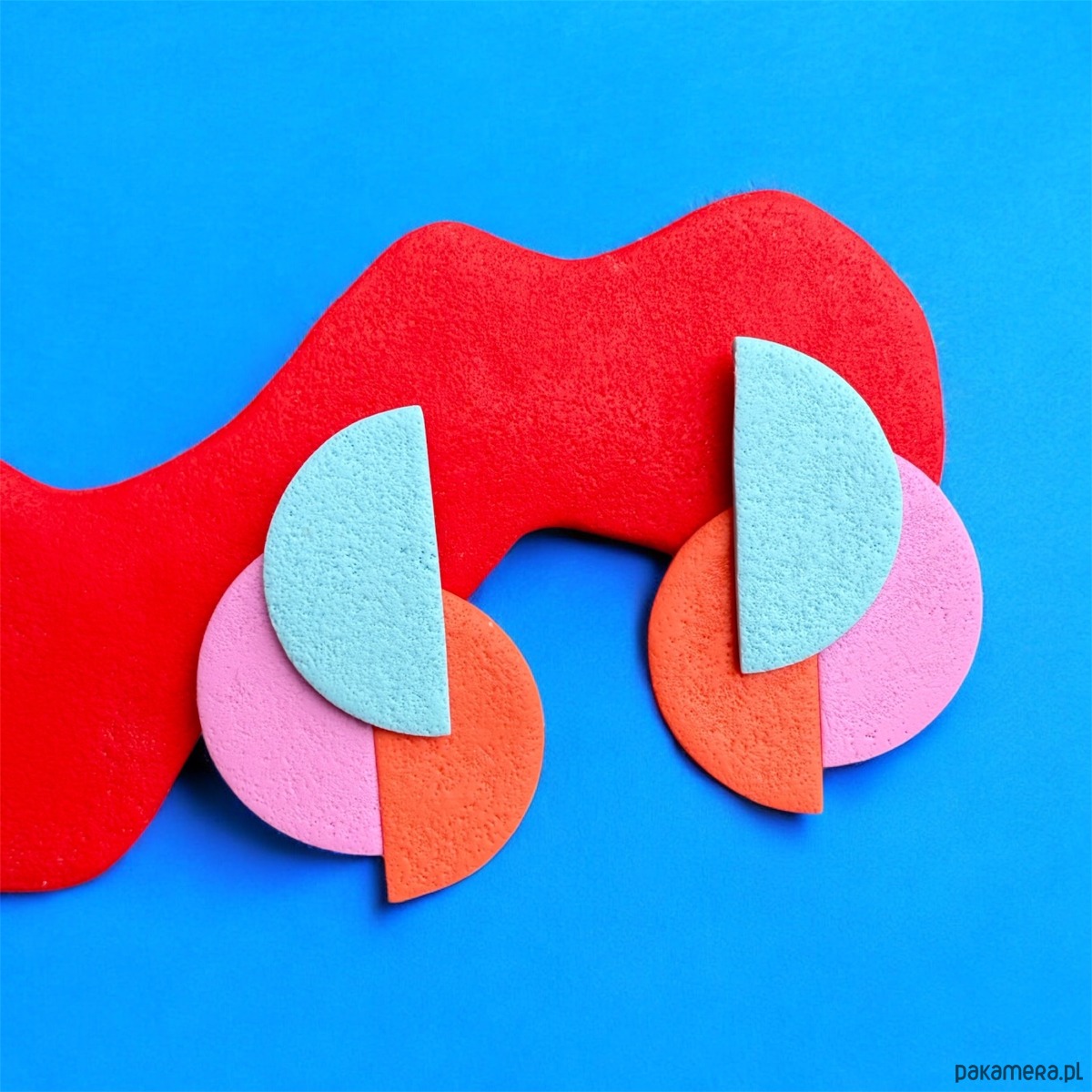 Oryginalne kolczyki wykonane ręcznie z dbałością o szczegóły z profesjonalnej glinki polimerowej, wypalane w piecu i szlifowane w domowej pracowni. Każda para kolczyków jest niepowtarzalna i wyjątkowa. Kolczyki są bardzo lekkie i wygodne, nie obciążają płatka ucha i przyciągają spojrzenia. Zapinane na sztyft ze stali chirurgicznej.