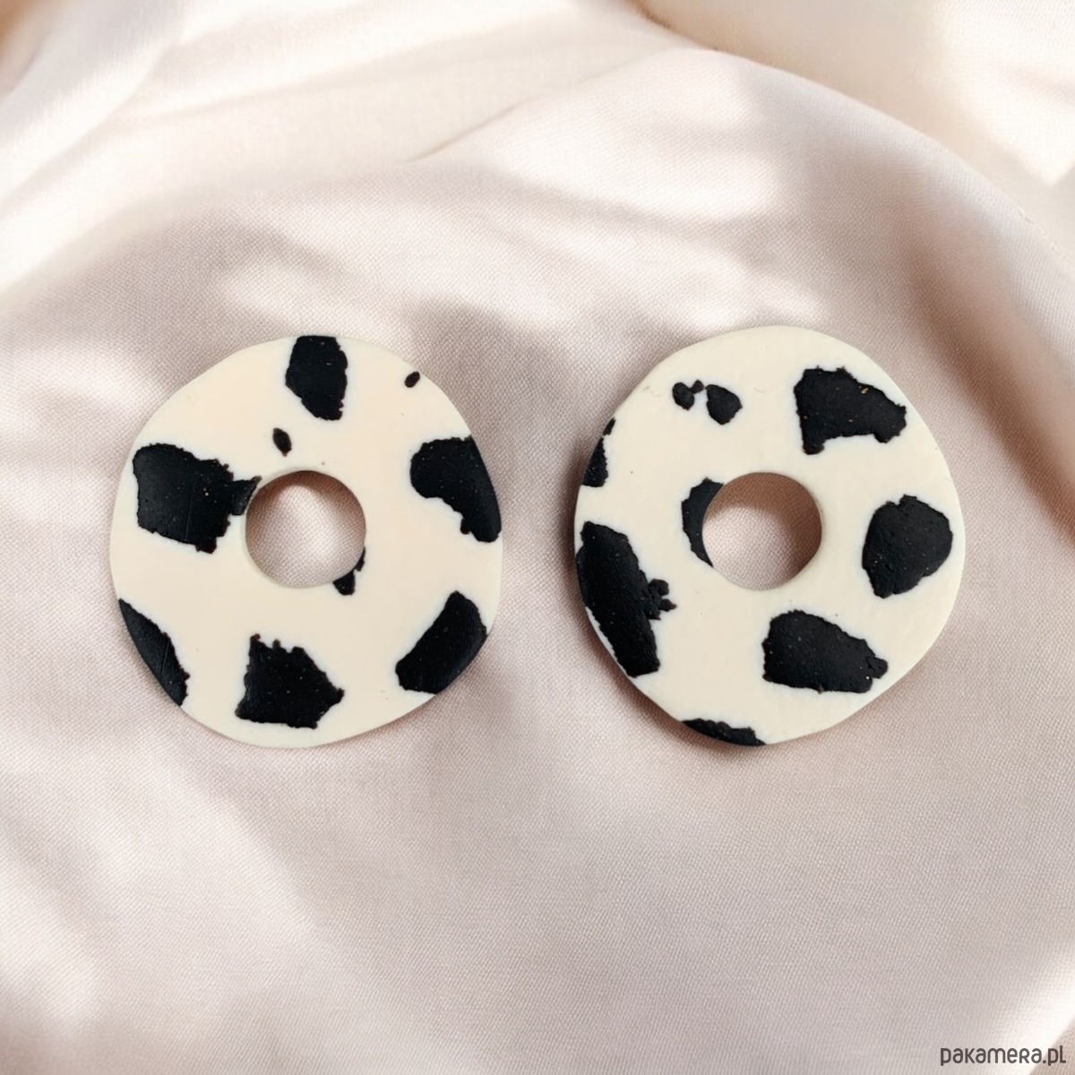 Oryginalne kolczyki wykonane ręcznie z dbałością o szczegóły z profesjonalnej glinki polimerowej, wypalane w piecu i szlifowane w domowej pracowni. Każda para kolczyków/klipsow jest niepowtarzalna i wyjątkowa. Kolczyki są bardzo lekkie i wygodne, nie obciążają płatka ucha i przyciągają spojrzenia. Zapinane na sztyft ze stali chirurgicznej.