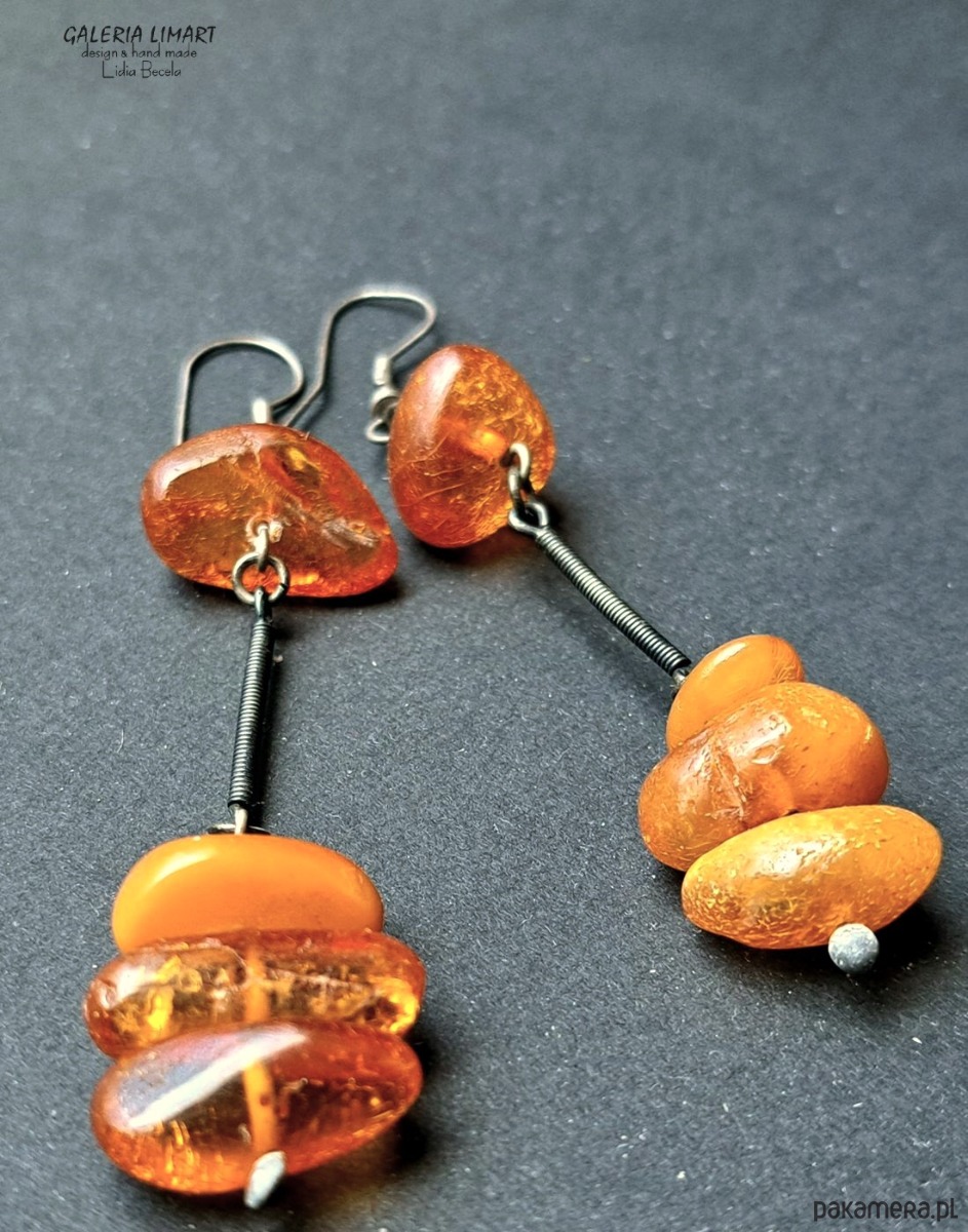 Oryginalne kolczyki z bursztynów bałtyckich mlecznego i koniakowego Prezent