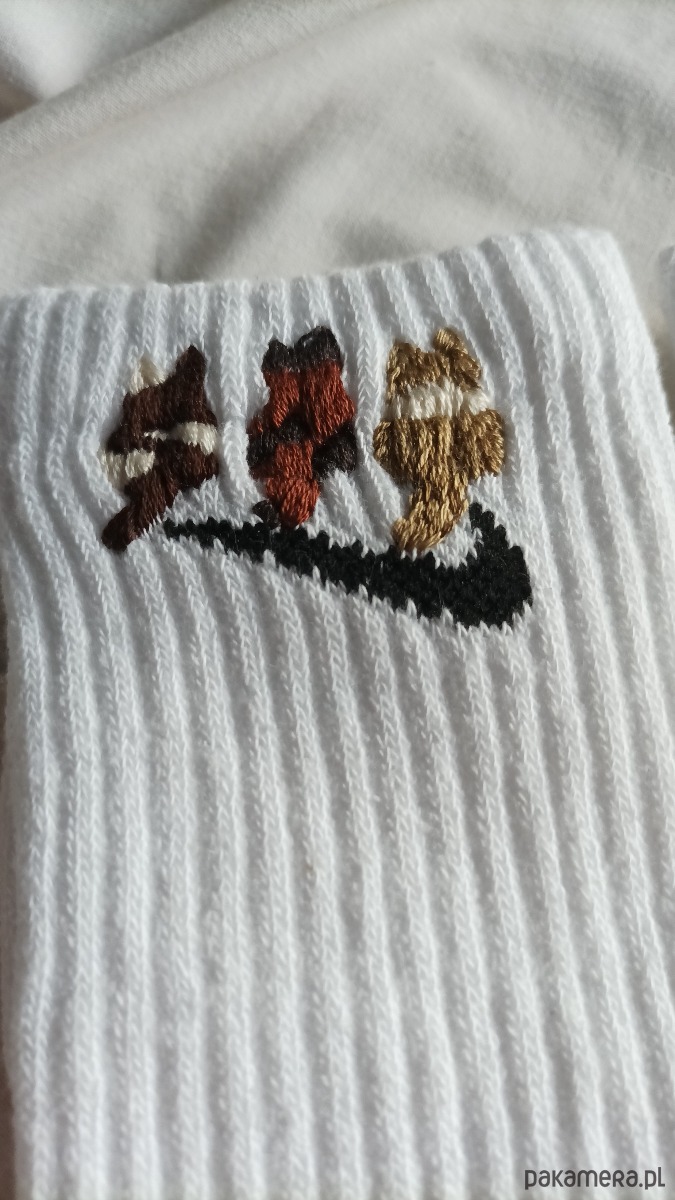 Skarpety haftowane przy rozciągnięciu dlatego przy noszeniu wzór nie będzie zdeformowany i będzie pięknie się prezentować.