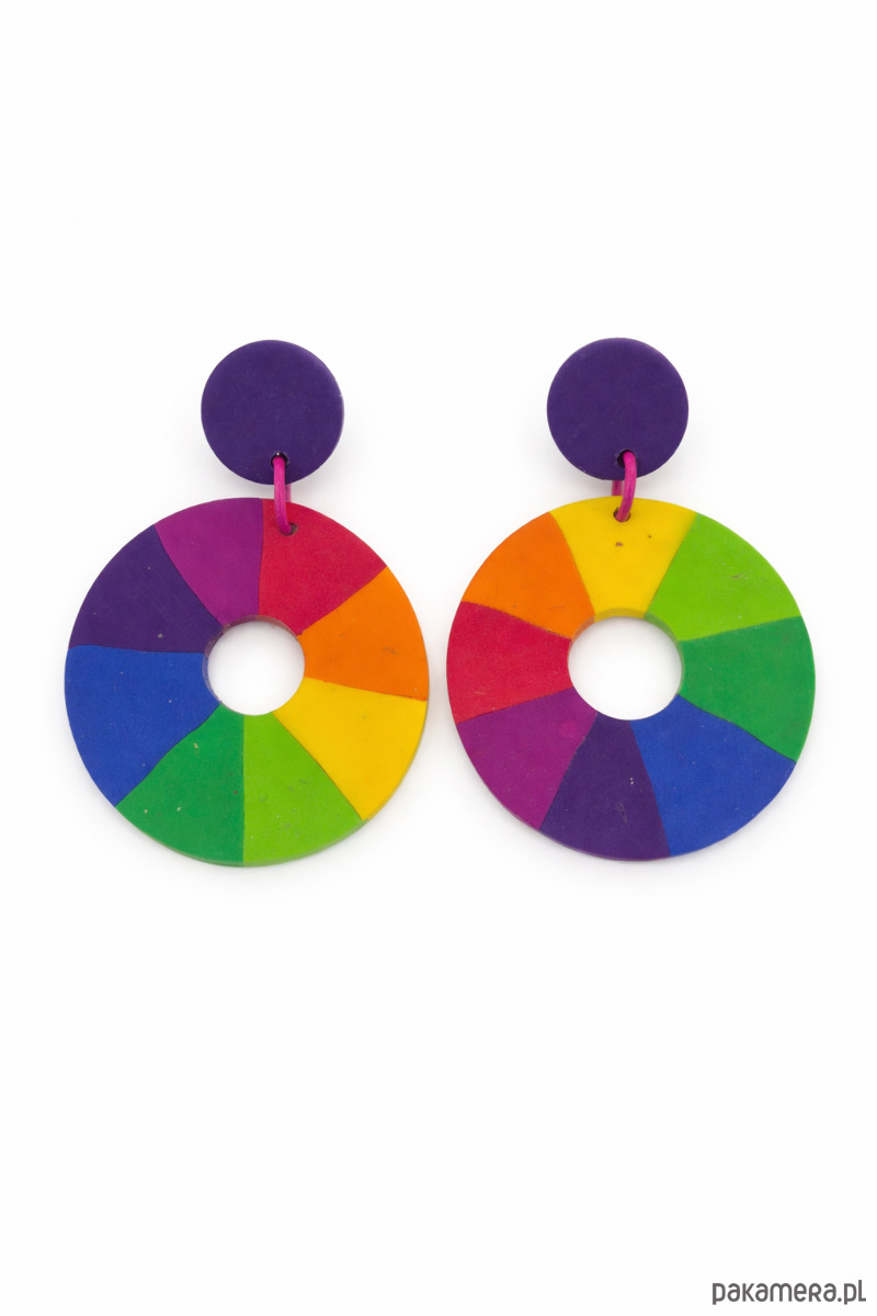 Oryginalne kolczyki z masy polimerowej, w tęczowych kolorach. Sztyfty wykonane są z nieuczulającej masy plastycznej