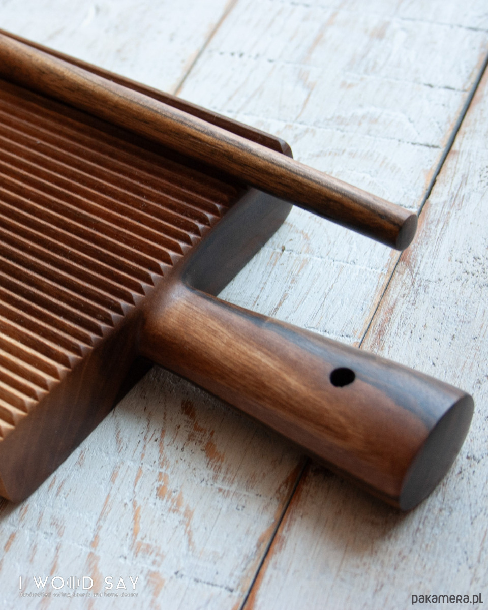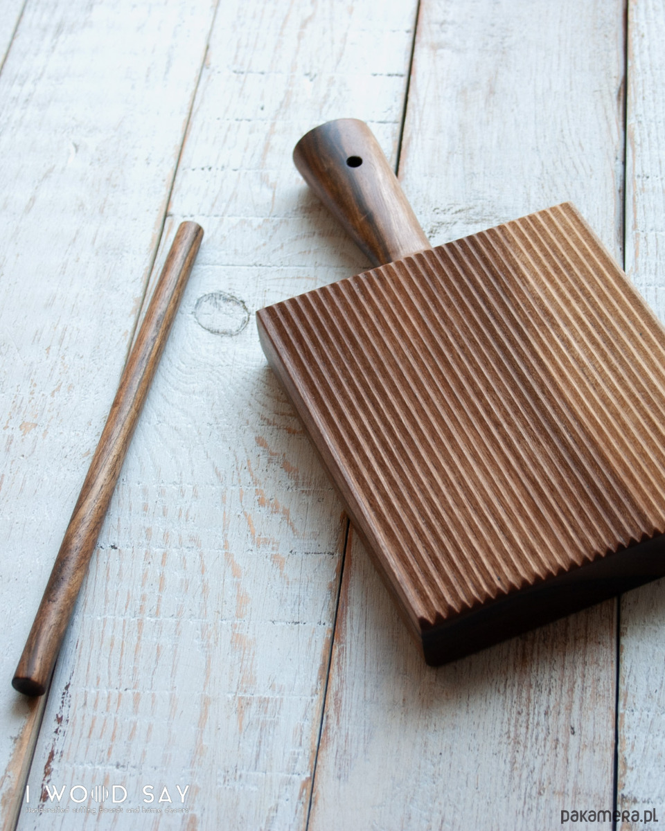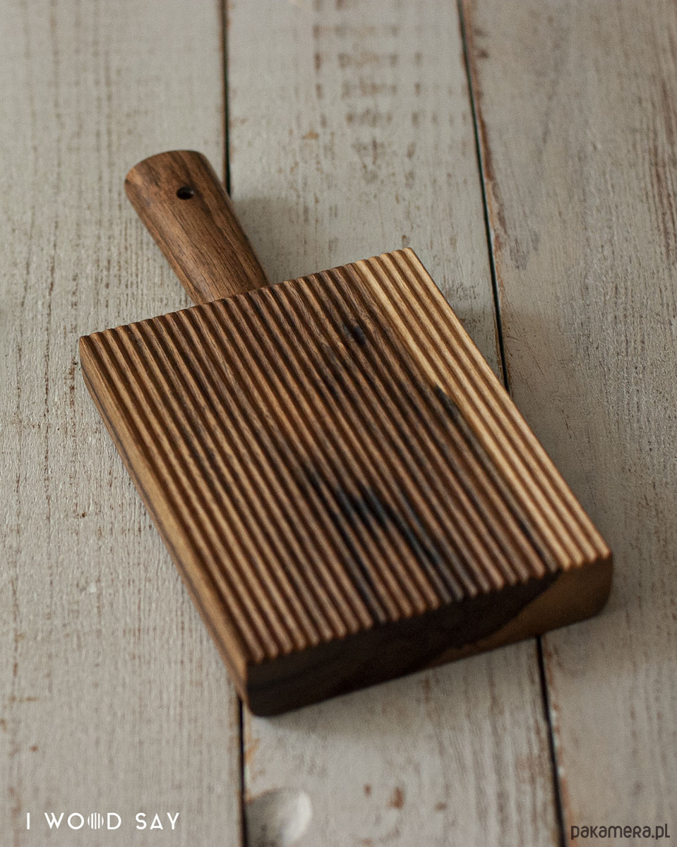 Każda deseczka jest wykonana ręcznie z europejskiego drewna orzecha i posiada żłobioną powierzchnię. Rowki są na tyle głębokie, aby ułatwiać formowanie i nadawać teksturę gnocchi czy cavatelli.