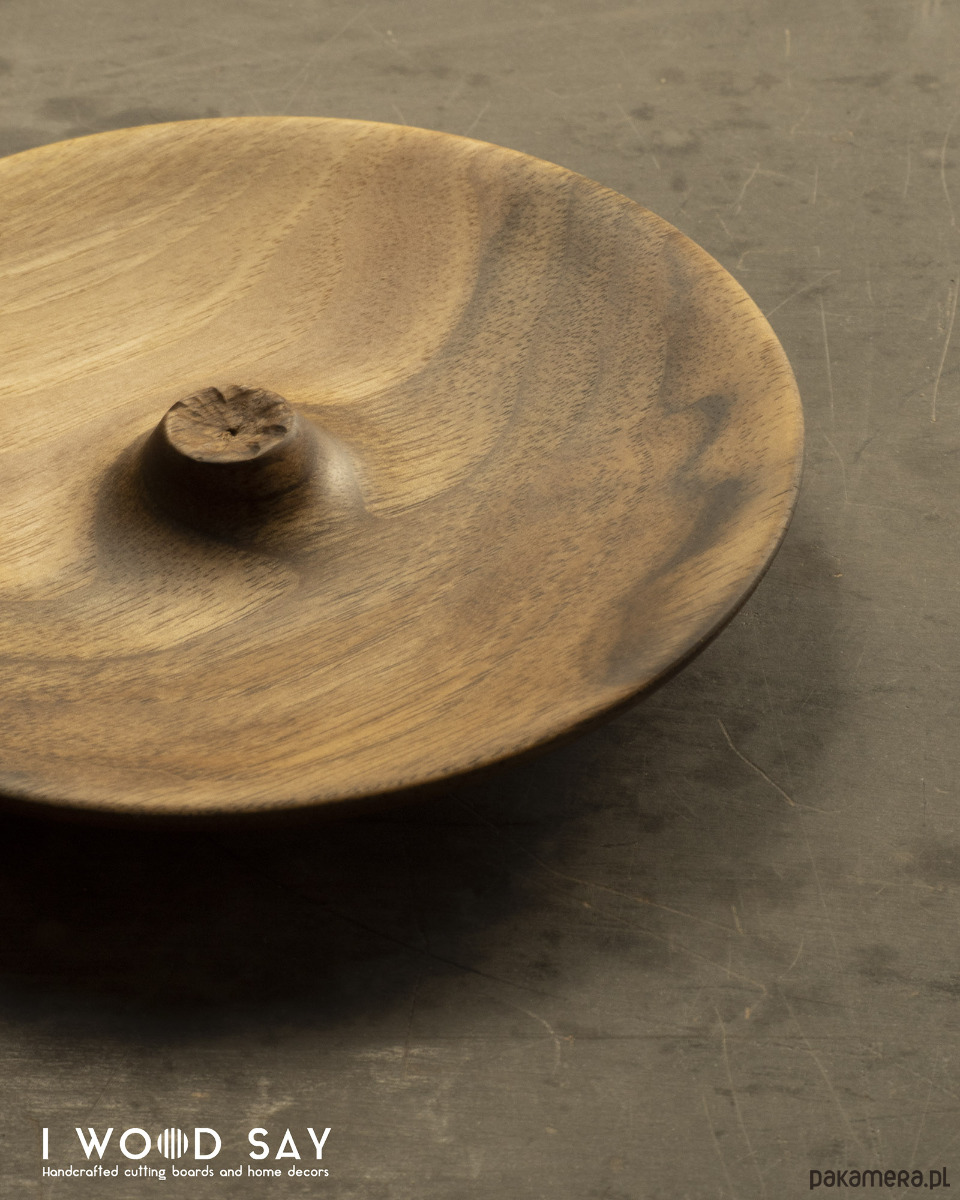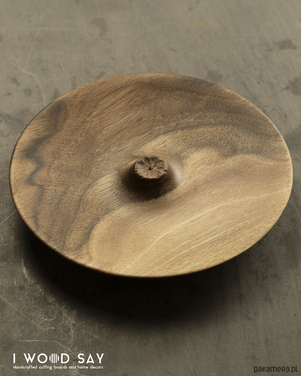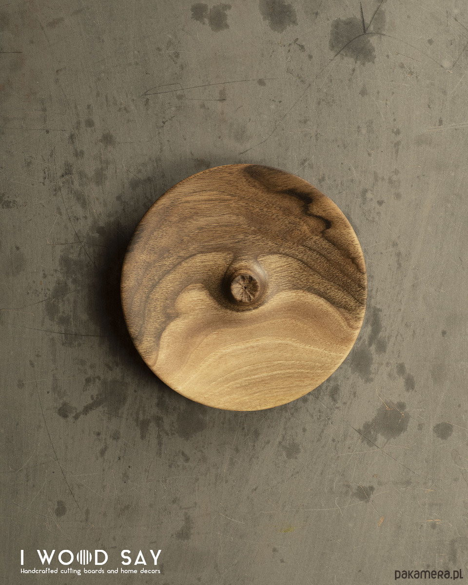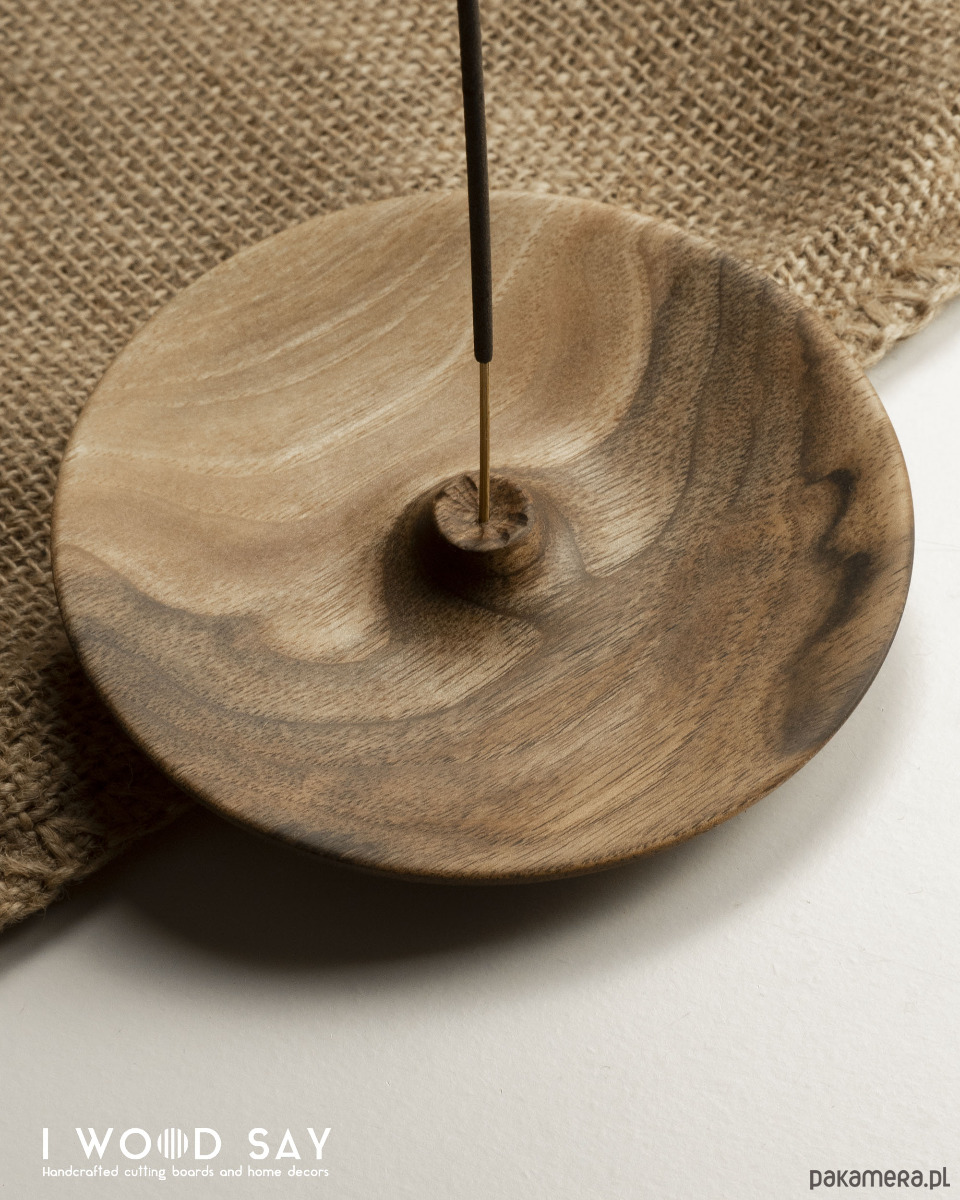 Podstawka toczona w drewnie orzecha włoskiego, przeznaczona do palenia tradycyjnych kadzidełek patyczkowych.
