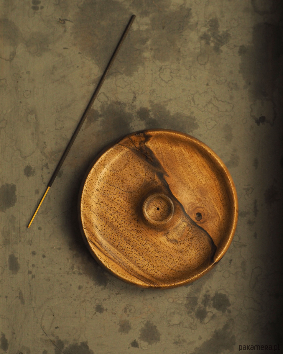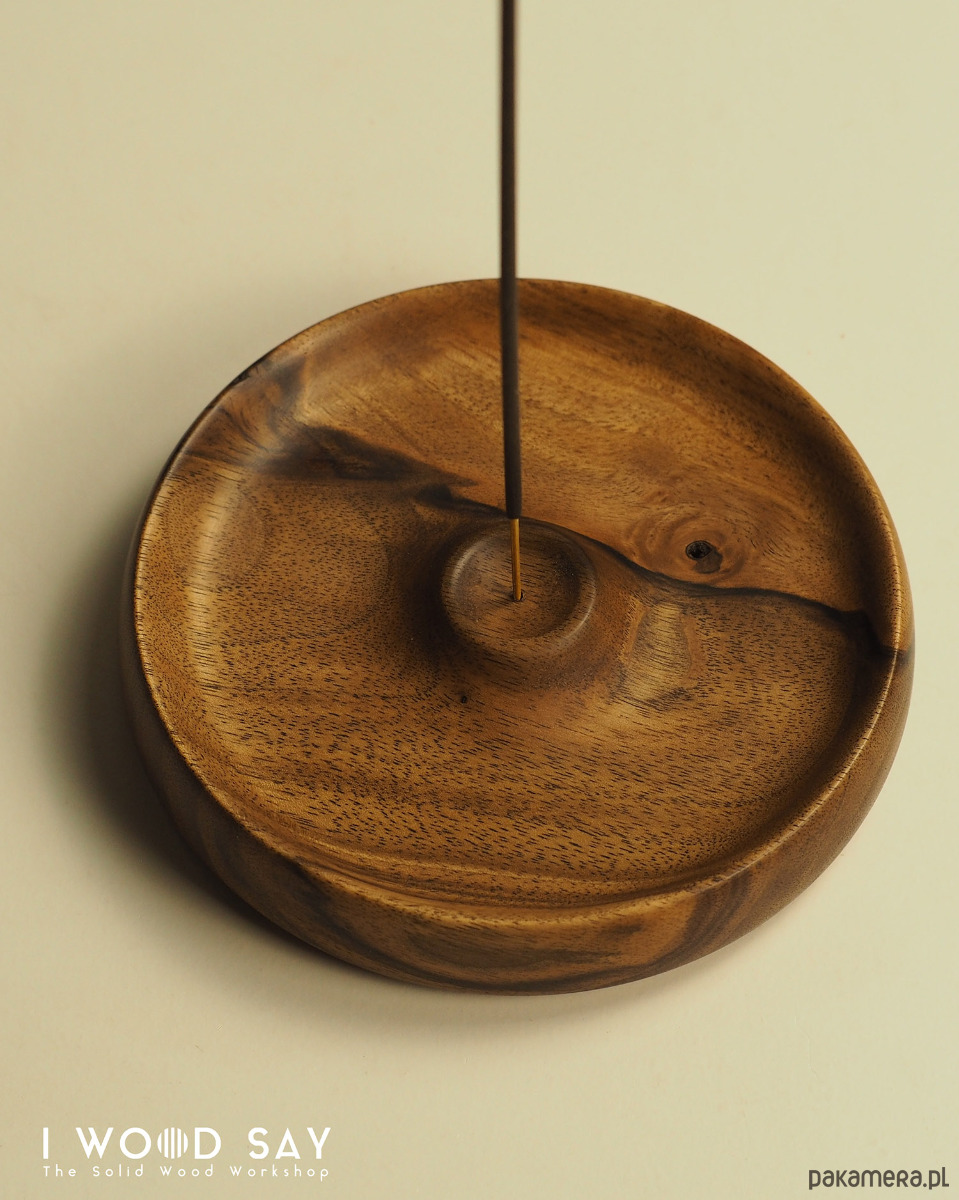 Podstawki toczone w drewnie orzecha włoskiego. Przeznaczone do palenia tradycyjnych kadzidełek patyczkowych.