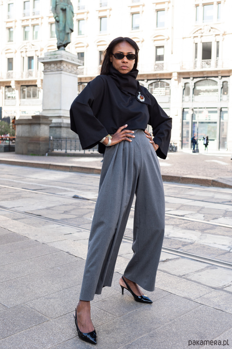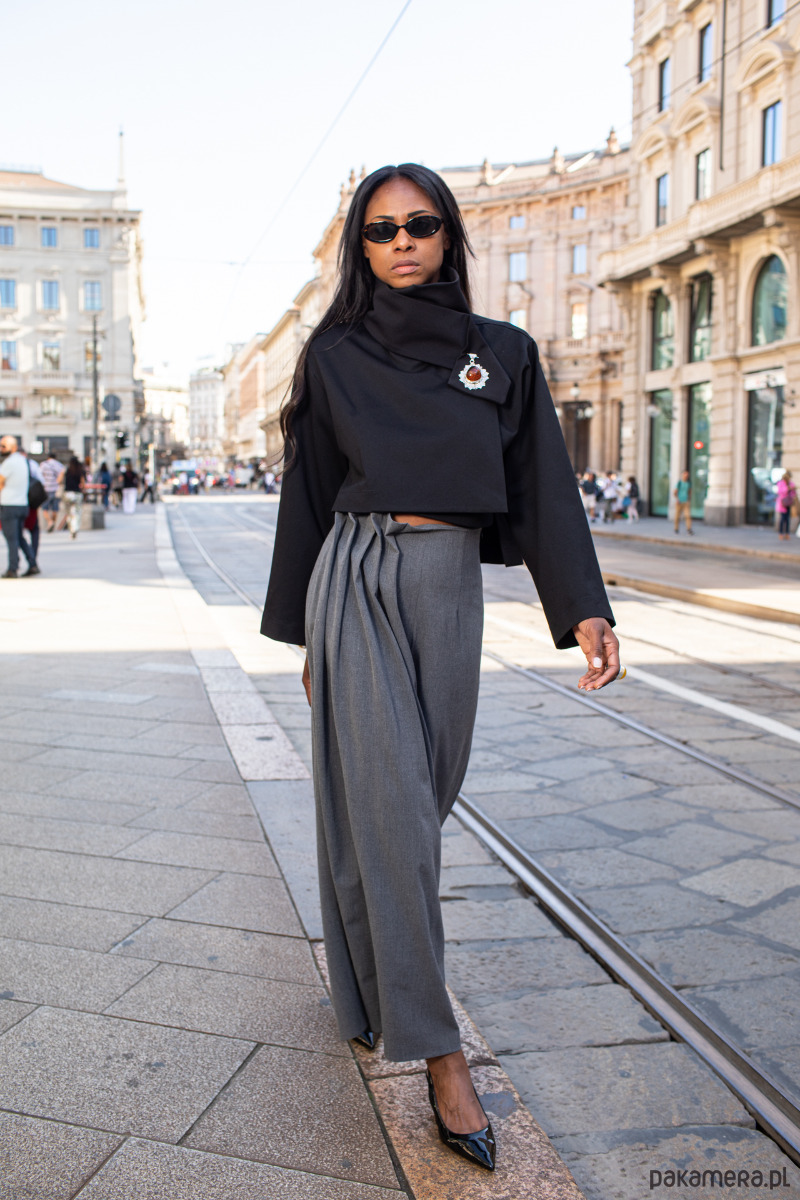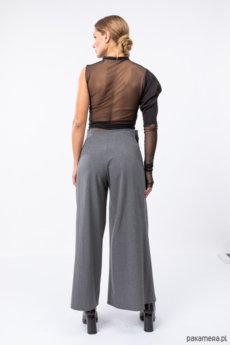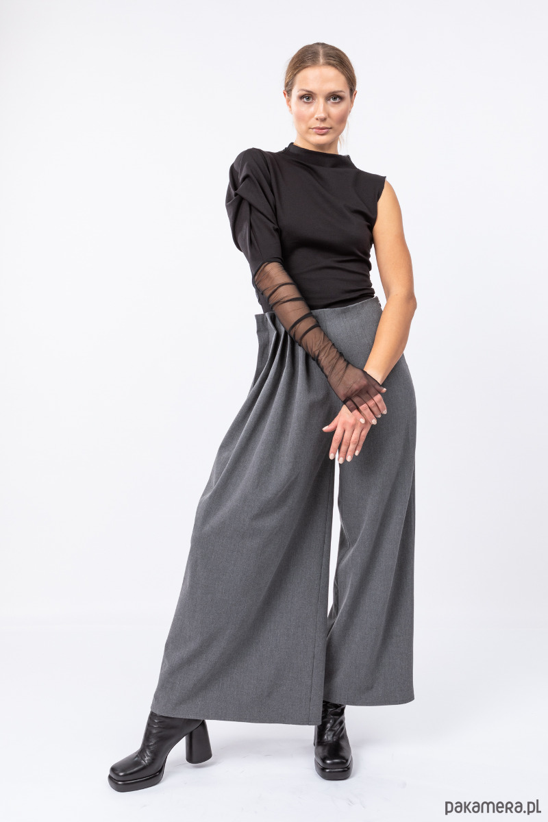 asymetryczne zakładki poszerzają jedną nogawkę,
