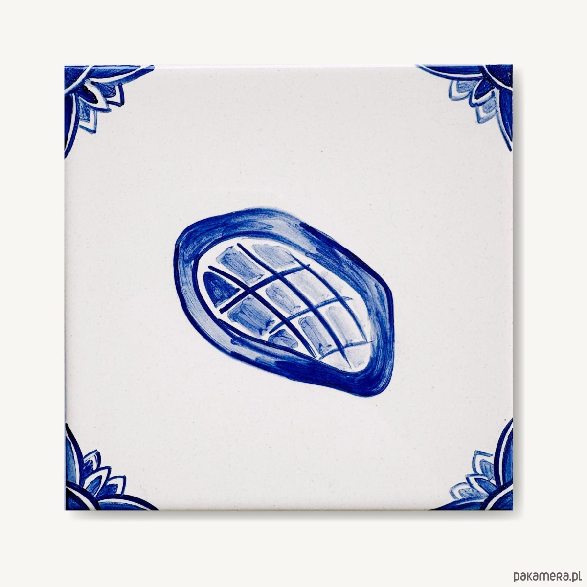 Każdy kafelek maluję ręcznie więc nie znajdziesz dwóch identycznych. Widoczne są pociągnięcia pędzla i drobne różnice w odcieniach.