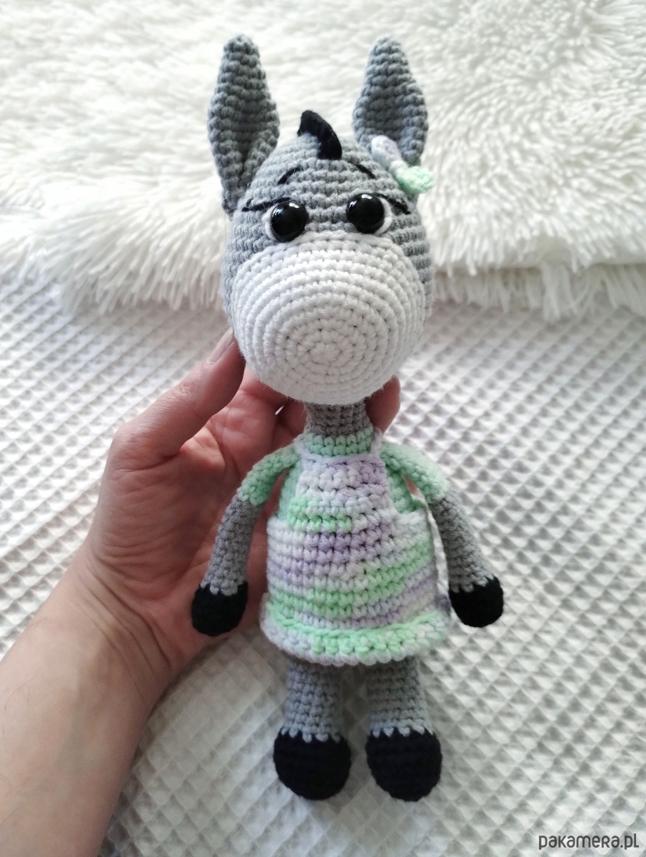 Szydełkowa ośliczka w sukience - baletnica to urocza zabawka dla każdego malucha.