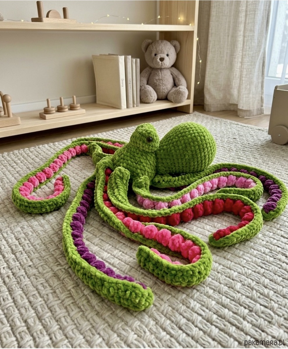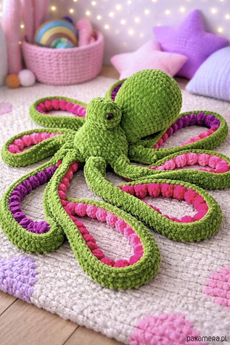 Szukasz prezentu, który skradnie serce dziecka i stanie się wyjątkową ozdobą pokoju? Poznaj naszą soczyście zieloną ośmiornicę – prawdziwą królową morskich opowieści!