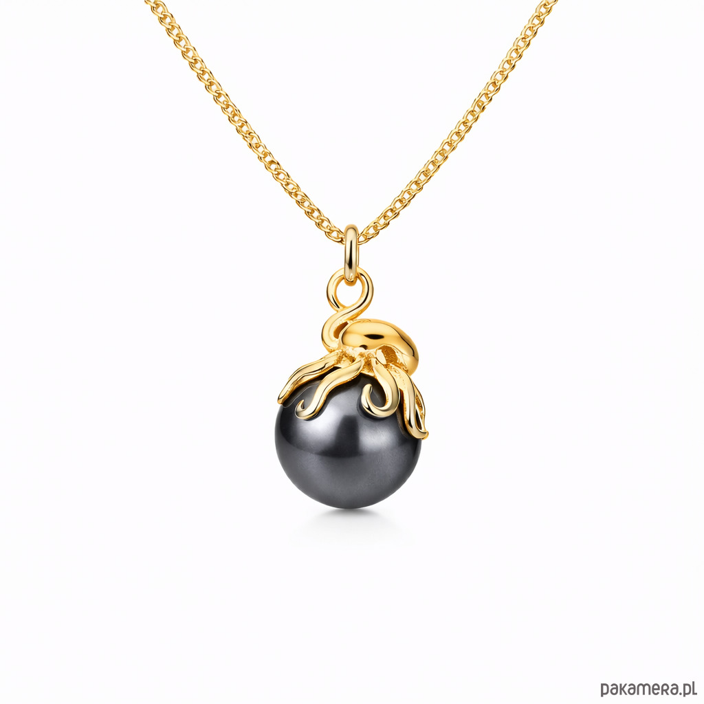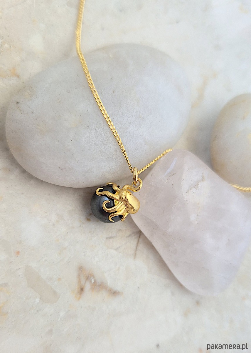 Ośmiornica z czarną perłą- naszyjnik srebro złocone