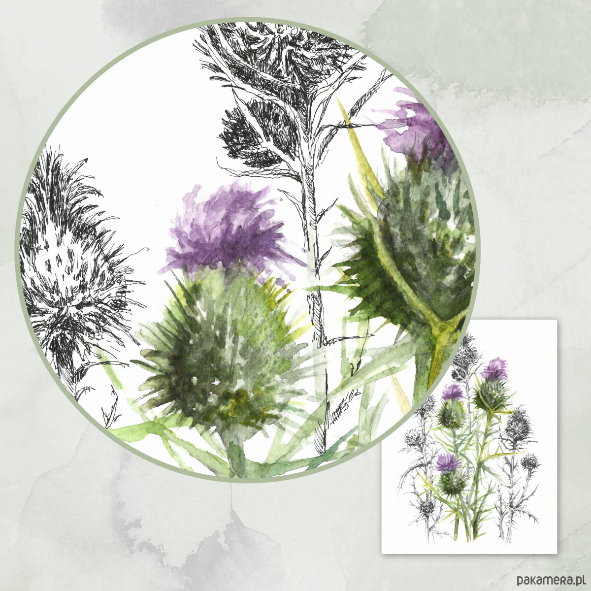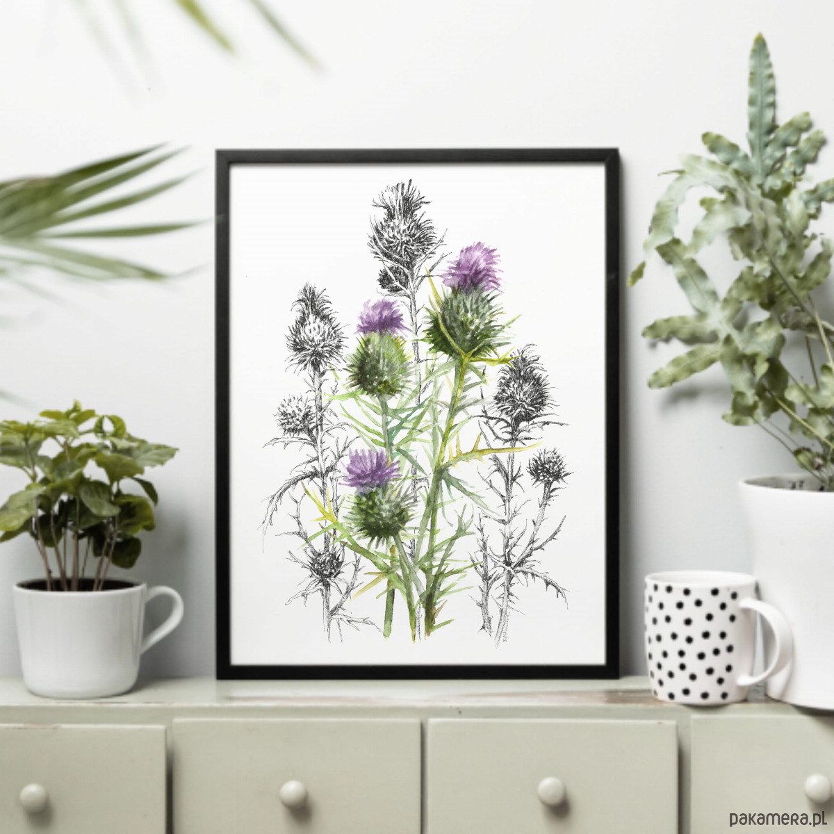 Osty - akwarela art print w oprawie.