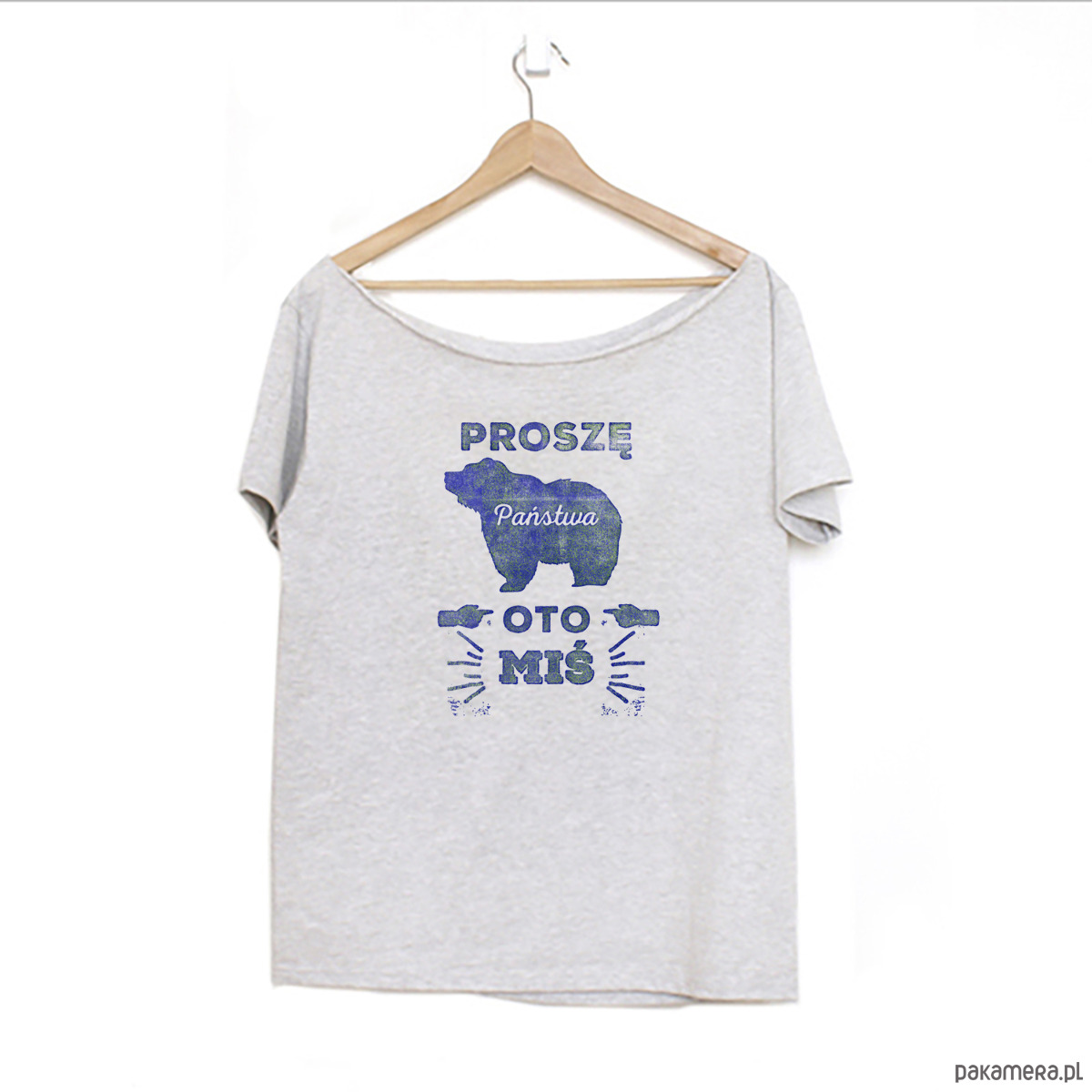 Miś nie gryzie, nadruk kolorowy, szary melanż przytulny jak wspomnienia z przedszkola.