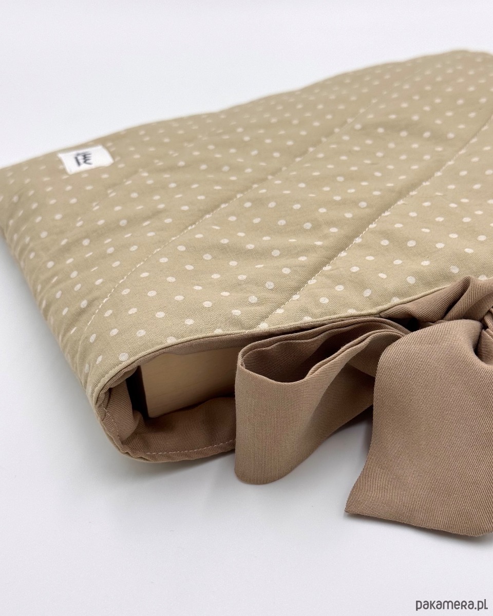 Otulacz/pokrowiec na książkę, uszyty z unikatowych tkanin z drugiego obiegu.