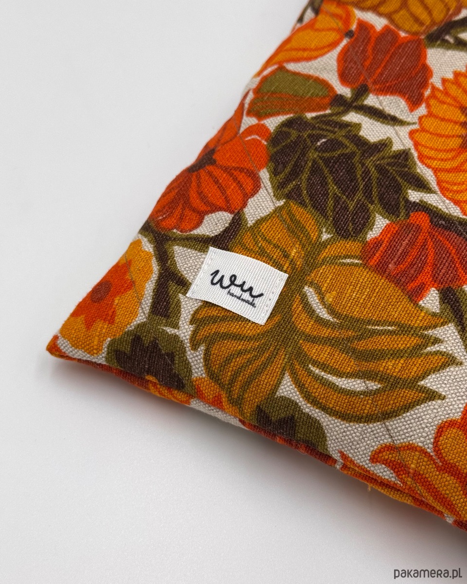Otulacz/pokrowiec na książkę, uszyty z unikatowych tkanin z drugiego obiegu.