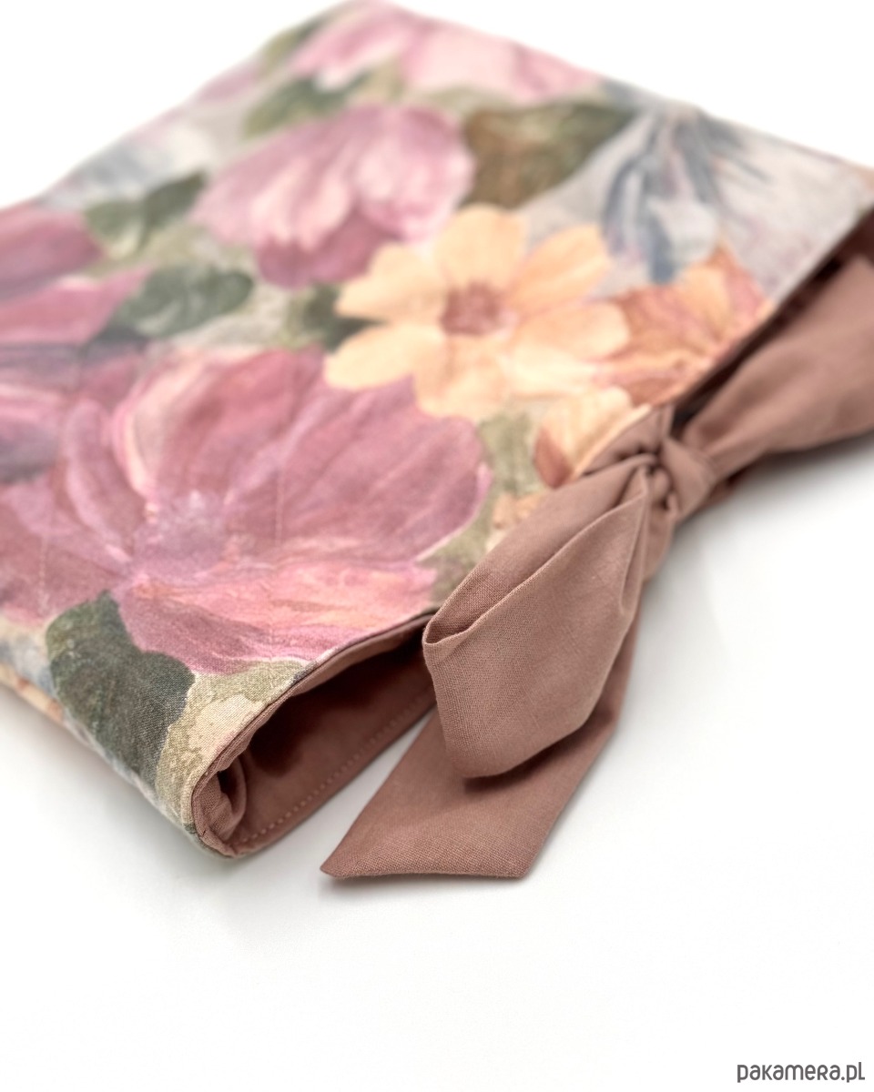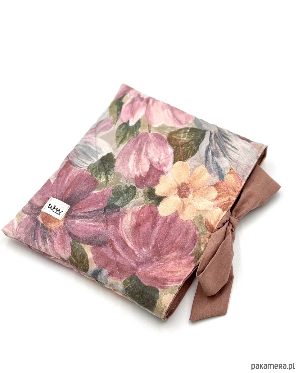 Otulacz/pokrowiec na książkę, uszyty z unikatowych tkanin z drugiego obiegu.