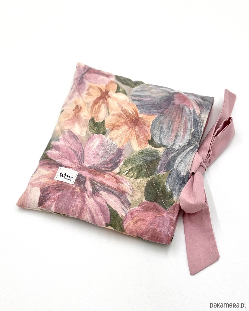 Otulacz/pokrowiec na książkę, uszyty z unikatowych tkanin z drugiego obiegu.