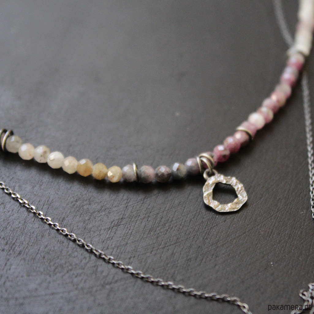 Minerały są przepięknej barwy i ozdobione zostały srebrną młotkowaną zawieszką.