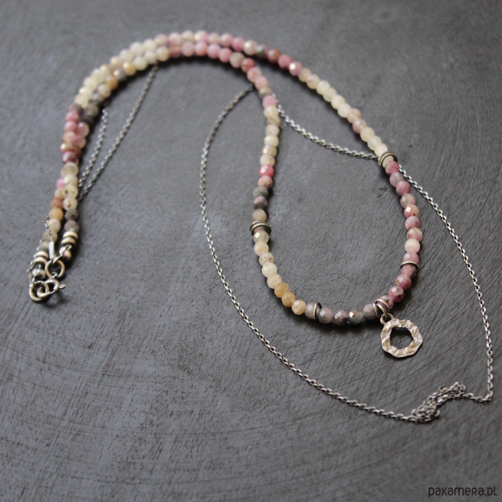 Minerały są przepięknej barwy i ozdobione zostały srebrną młotkowaną zawieszką.
