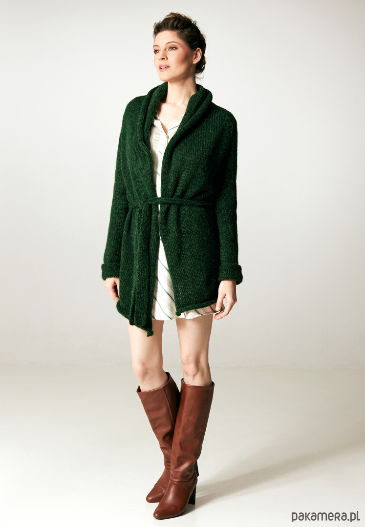 Kobiecy , otulający kardigan z paskiem