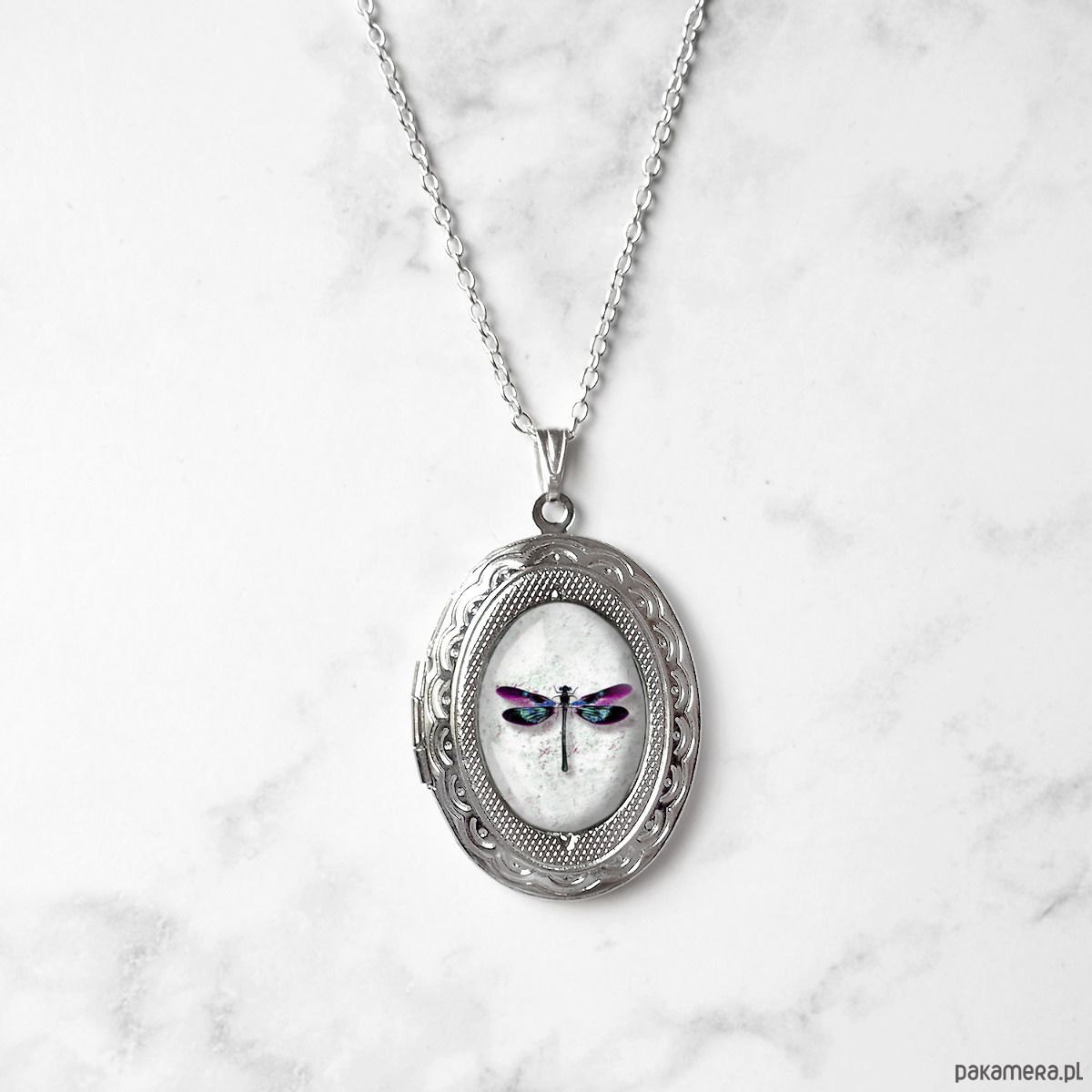 OTWIERANY MEDALION na prezent, grafika z ważką