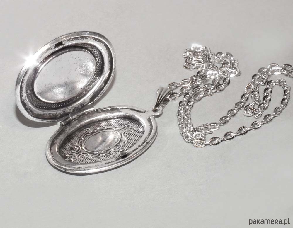 Śliczny, stylowy, mały otwierany medalion - sekretnik z oryginalną grafiką artystyczną zatopioną pod wypukłym szkłem w oprawie w kolorze antycznego srebra. Wewnątrz medalionu miejsce na zdjęcie lub inny drobiazg. Biżuteria ta jest jedyna w swoim rodzaju i niespotykana, głównie dzięki szkłom z grafiką, które są unikatowe, wykonane ręcznie według mojego projektu.
